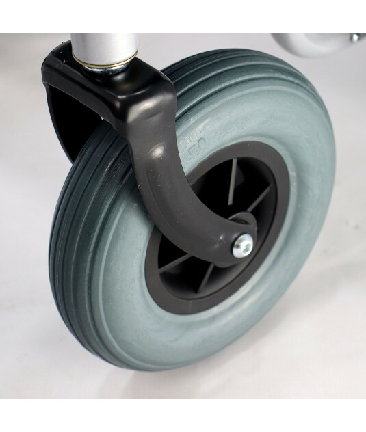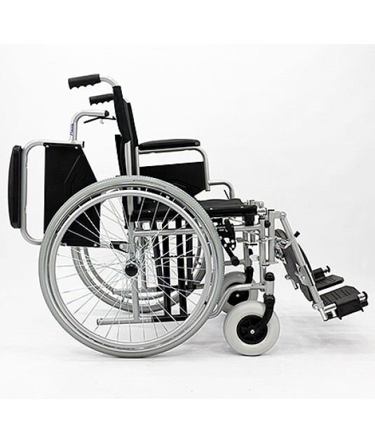 R$0,00Cadeira de rodas dobrável em X, estrutura em aço com 44 cm de largura de assento, capacidade para até 120 kg, apoios de braço escamoteáveis e apoios de pés removíveis. Rodízios de 8” e rodas traseiras de 24” para rodagem suave no dia a dia.
