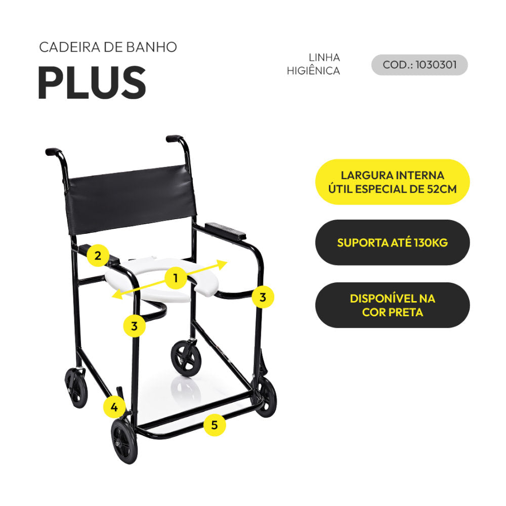 Cadeira de Banho Obeso Flex Suporta 130kg Elevação Braços Prolife
