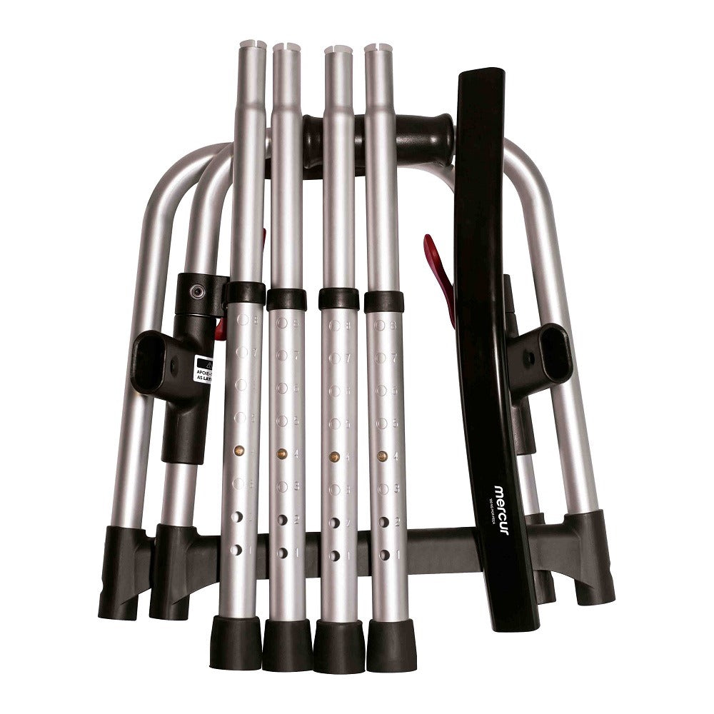Conforto no apoio, estabilidade de quatro rodas e praticidade no transporte.