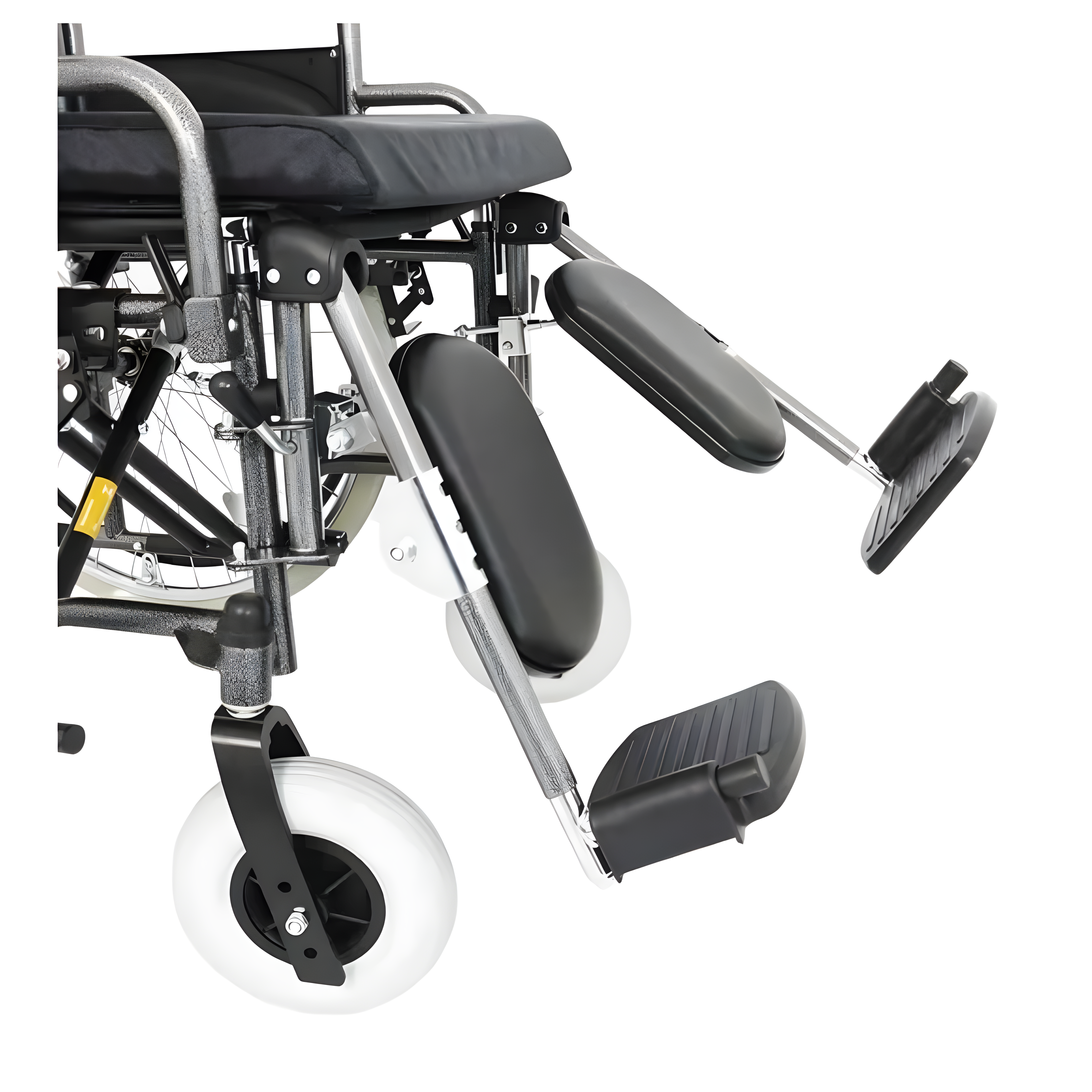 É um par de suportes elevatórios para a Cadeira de Rodas D400 Dellamed que permite ajustar a altura e a inclinação das pernas, melhorando a postura, o conforto e a circulação. Indicado para reabilitação e repouso dos membros inferiores.