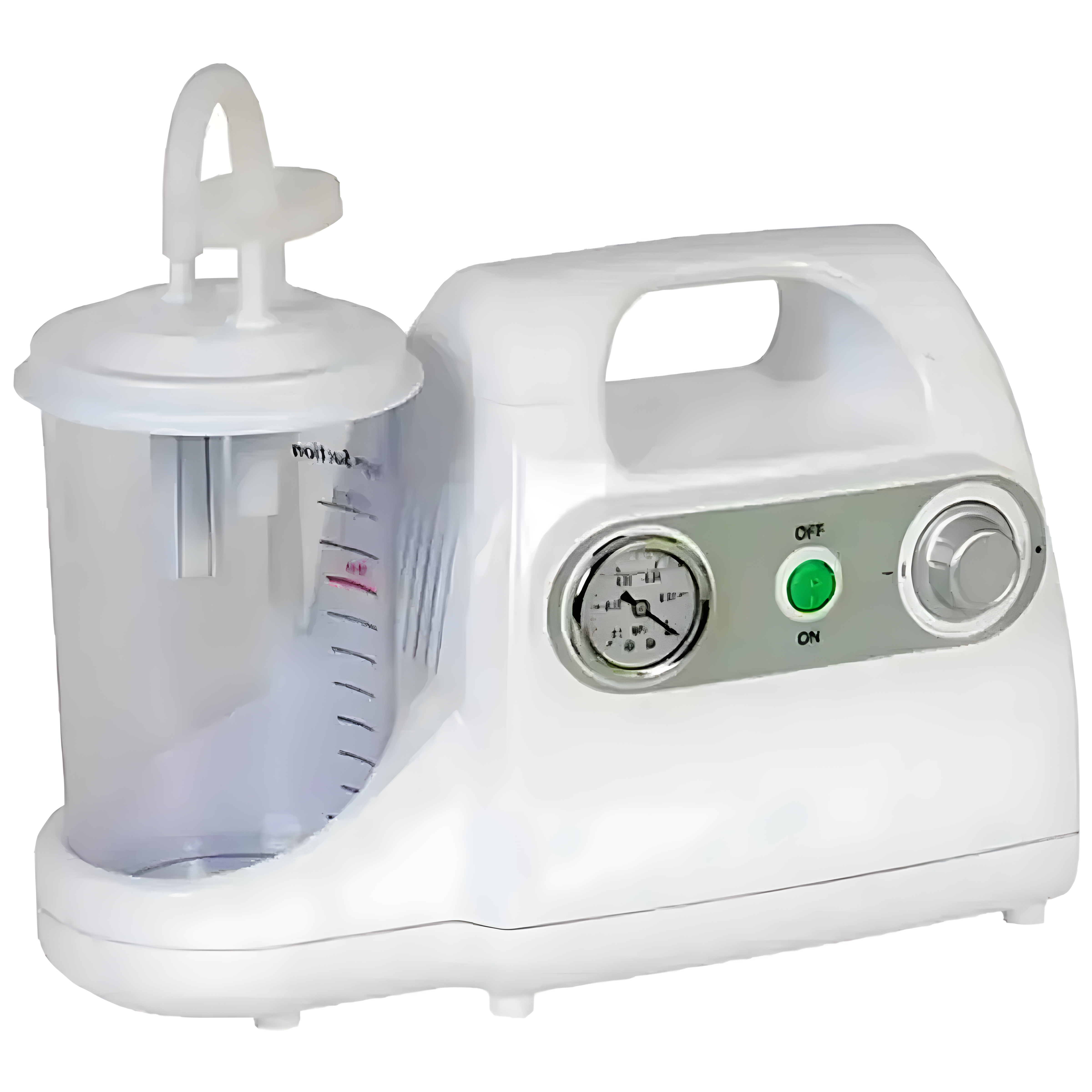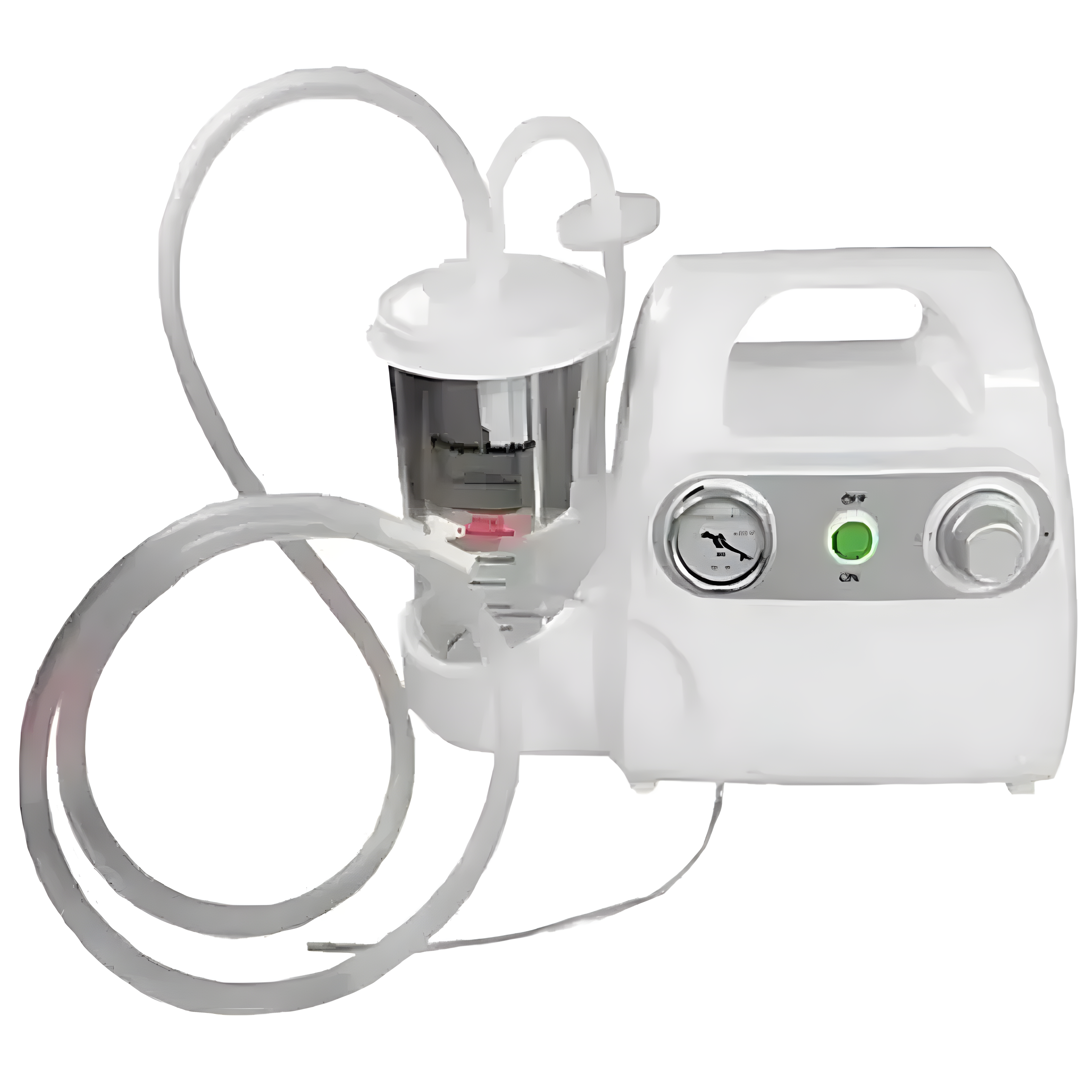 Unidade de sucção portátil para aspiração de fluidos e secreções, com reservatório de 1.000 mL, vazão com 15 L/min, pressão negativa ajustável e operação silenciosa (? 65 dB(A)). Compacto, leve e bivolt 110/220 V para uso clínico, hospitalar e domiciliar.