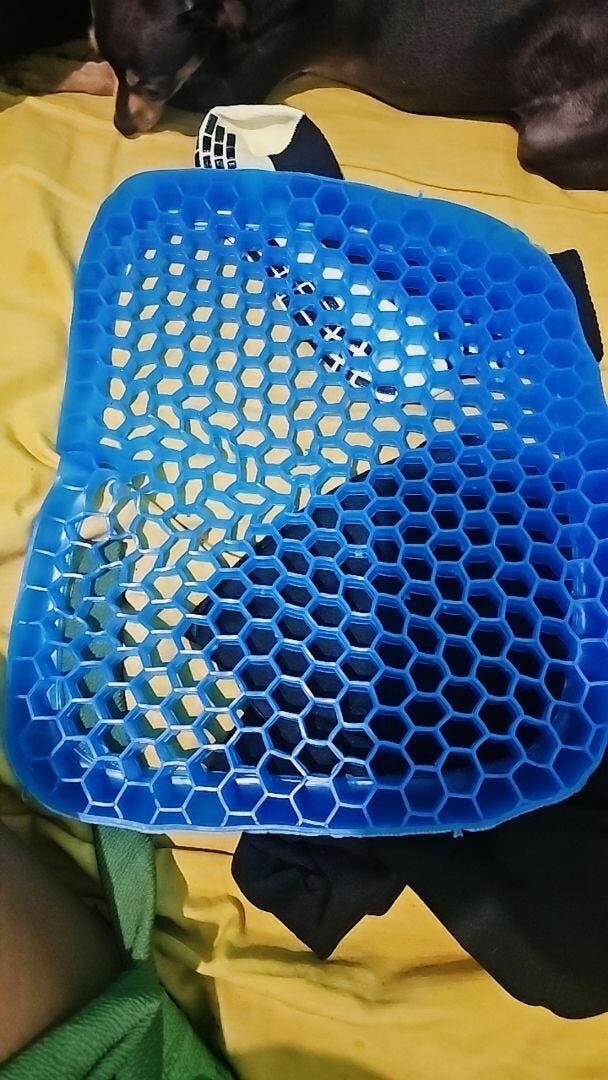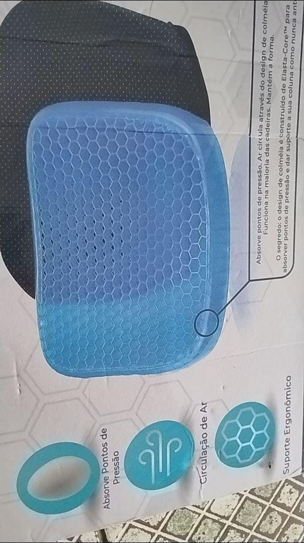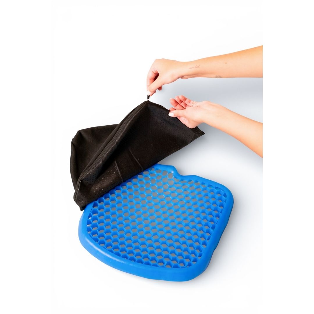 O design de colmeia absorve os pontos de pressão no cóccix e quadris, eliminando o desconforto de ficar sentado.