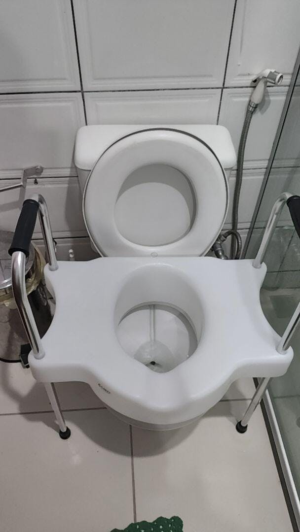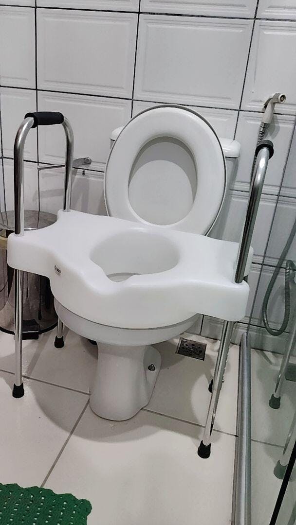 Elevação de ~11,5 cm para facilitar sentar e levantar, com alças laterais reguláveis (68–80 cm), estrutura resistente e encaixe seguro em vasos ovais. Mais segurança, autonomia e conforto no banheiro.