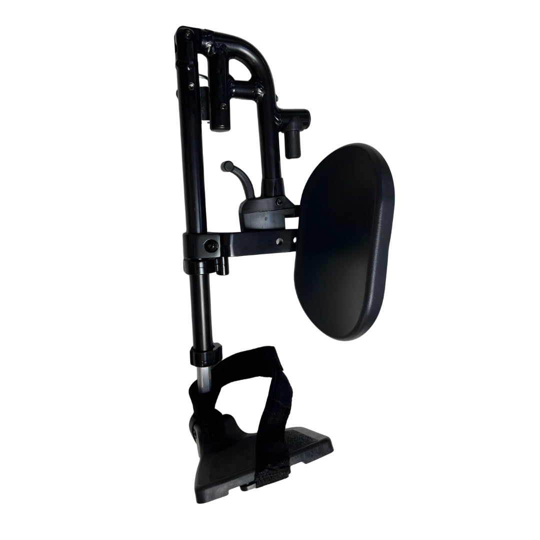 Conjunto lado esquerdo do apoio de pé com pedal para a Cadeira AVD Ortobras com pés eleváveis. Restaura o conforto, a estabilidade e a ergonomia do posicionamento dos membros inferiores, com encaixe nos pontos originais.