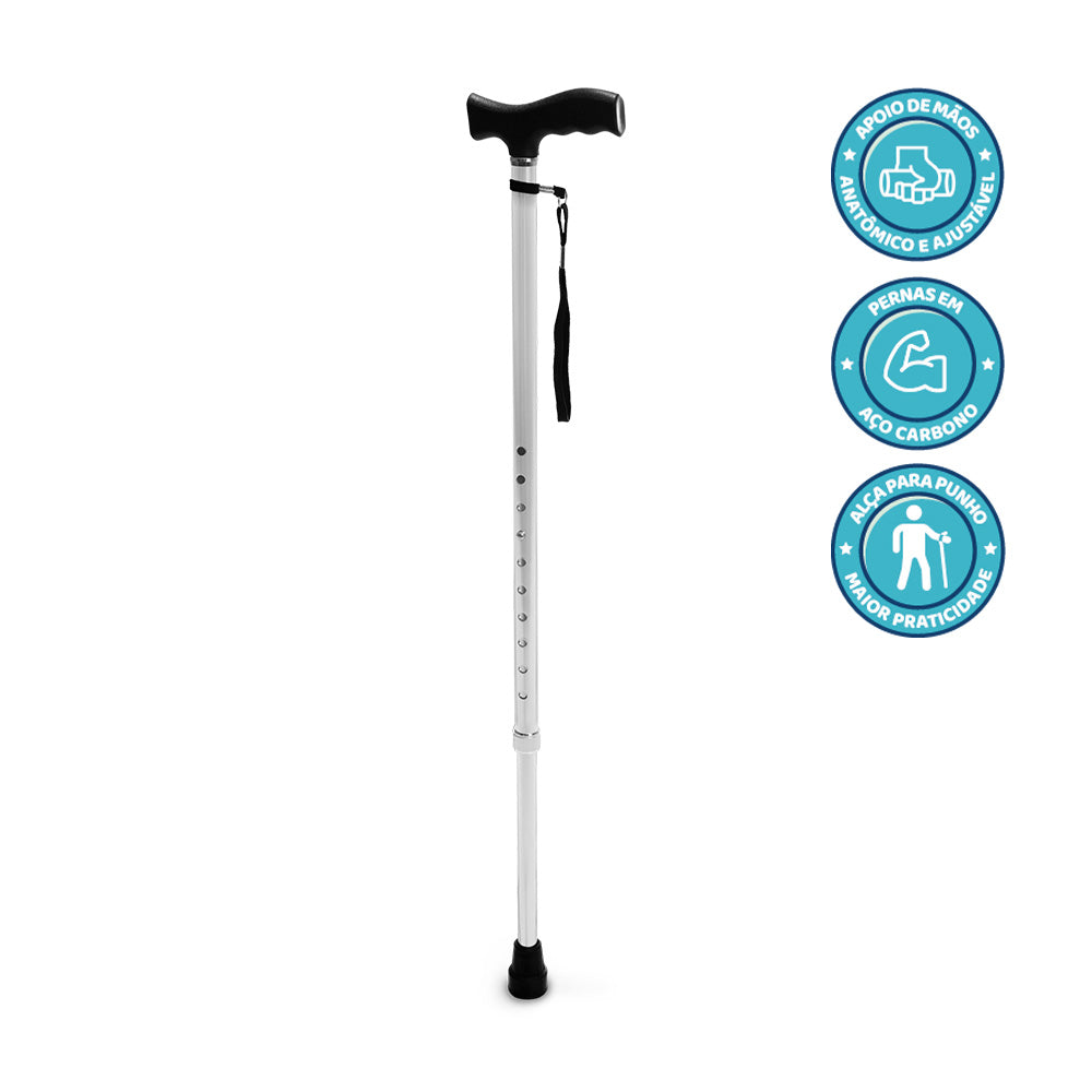 Bengala T Bastão com Altura Regulável até 90 Kg D8 – Dellamed