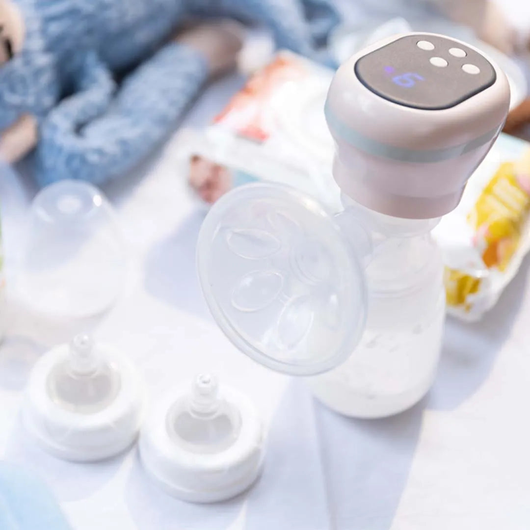 3 modos (massagem, lactação e bombeamento) com 9 níveis de intensidade, display LED, bateria recarregável USB-C e funil com almofada de silicone, livre de BPA. Portátil, silenciosa e confortável para a rotina de extração.