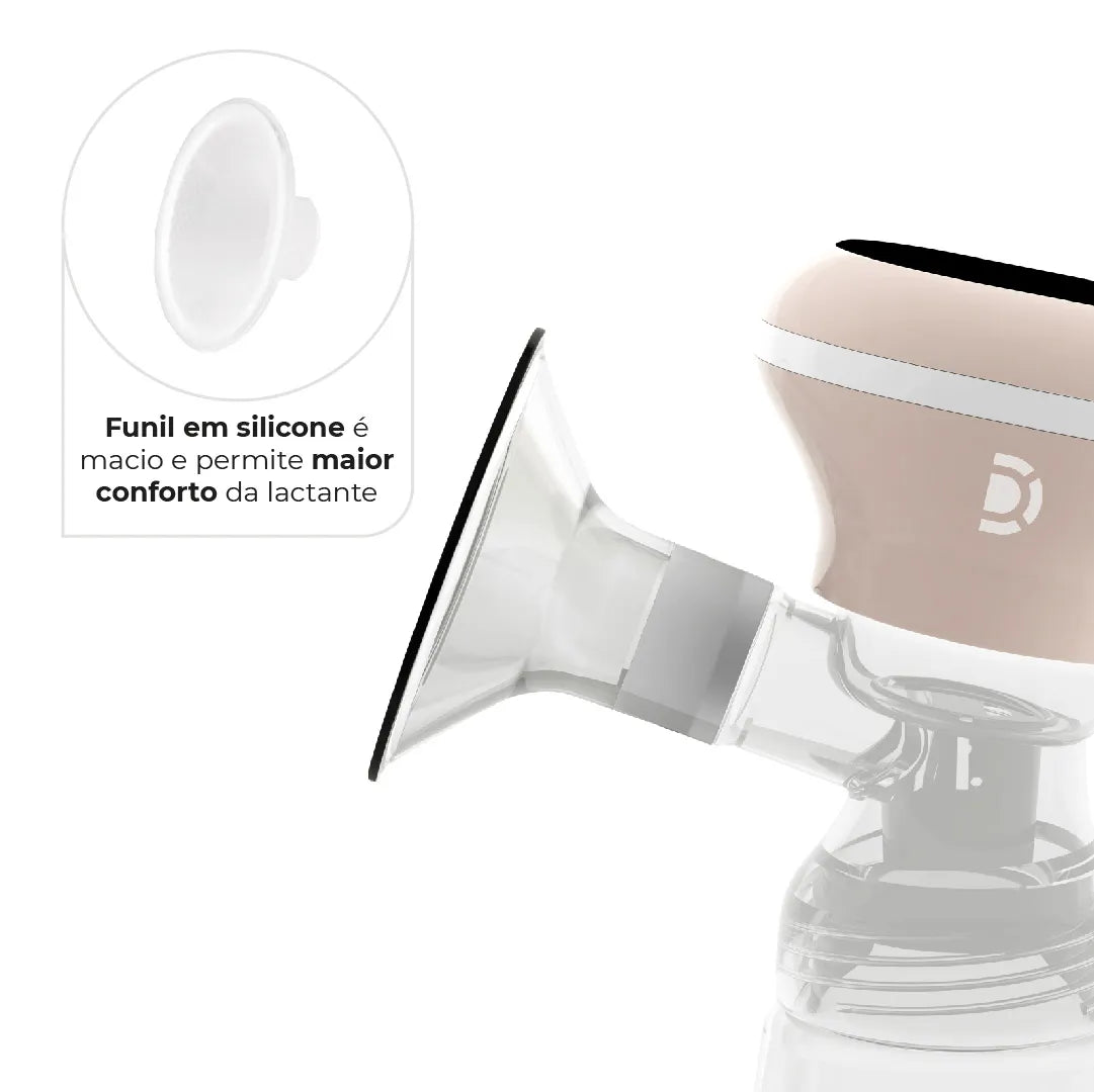 A Bomba Tira-Leite Dellamed é uma bomba elétrica compacta e recarregável com 3 modos (massagem, lactação e bombeamento) e 9 níveis de intensidade, funil com almofada de silicone macio e tela LED para ajuste simples e preciso.