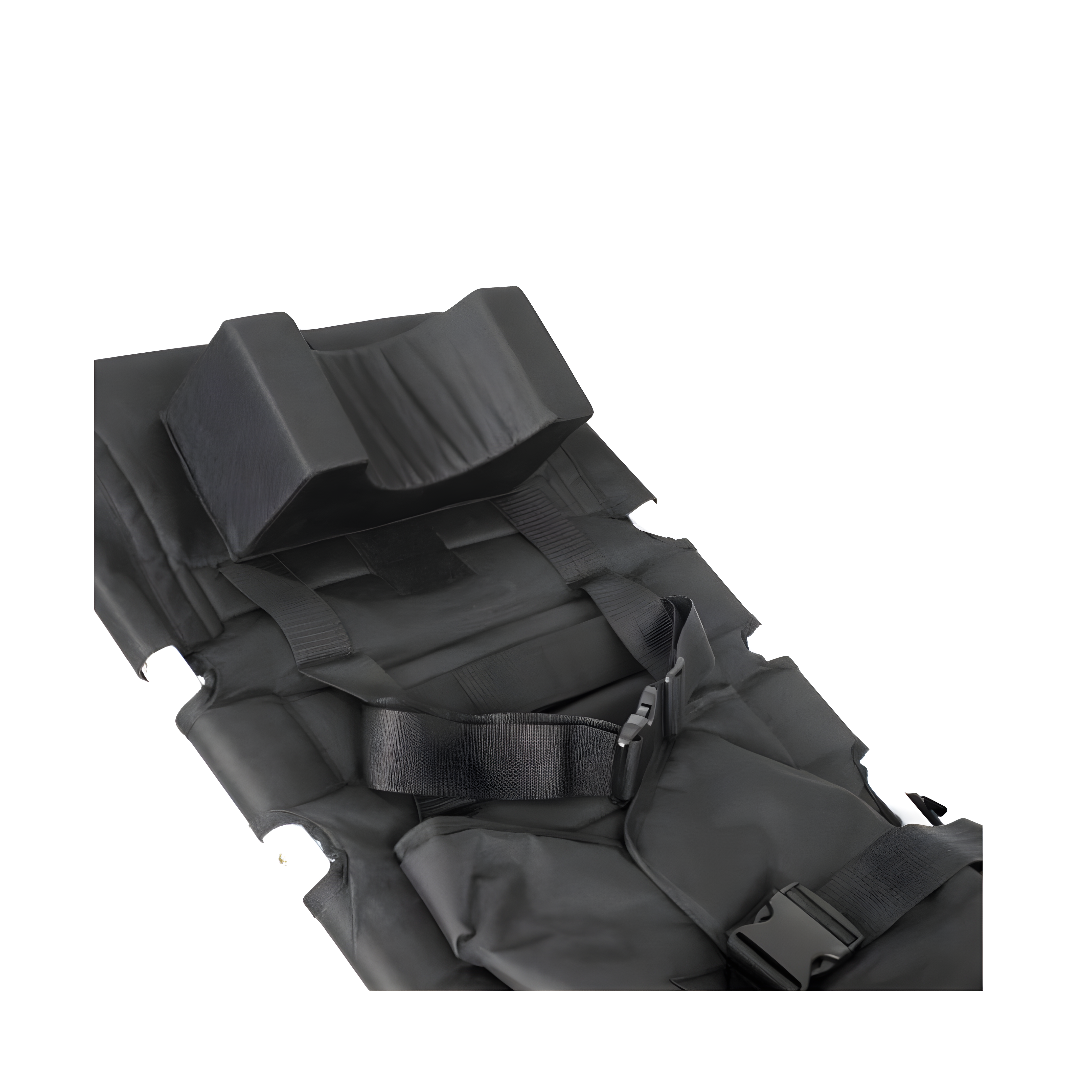 A concha anatômica traz apoio postural, a estrutura em alumínio garante durabilidade e os rodízios com freio oferecem segurança.