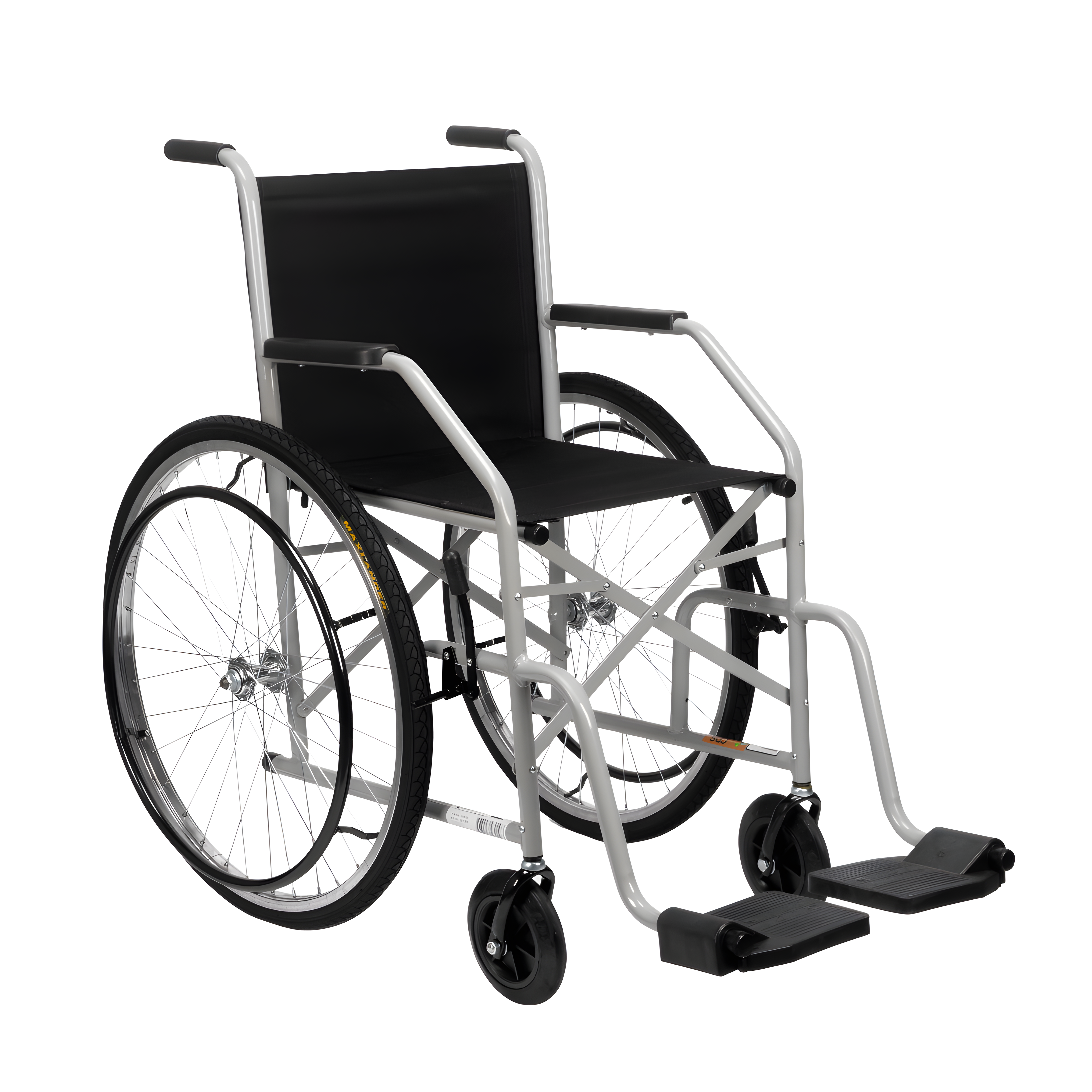 Estrutura em aço carbono, rodas traseiras raiadas 24” com pneus infláveis e fechamento em “X”. Robustez, conforto e praticidade para o uso diário em ambientes internos e externos.