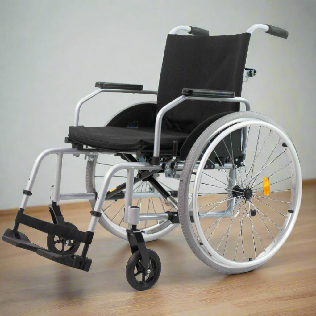 A Cadeira de Rodas Start C1 Economy da Polior Ottobock é leve, dobrável e fabricada em alumínio. Ideal para usuários de até 125kg, conta com rodas removíveis de rápida desmontagem e ajuste do comprimento de pernas sem uso de ferramentas.