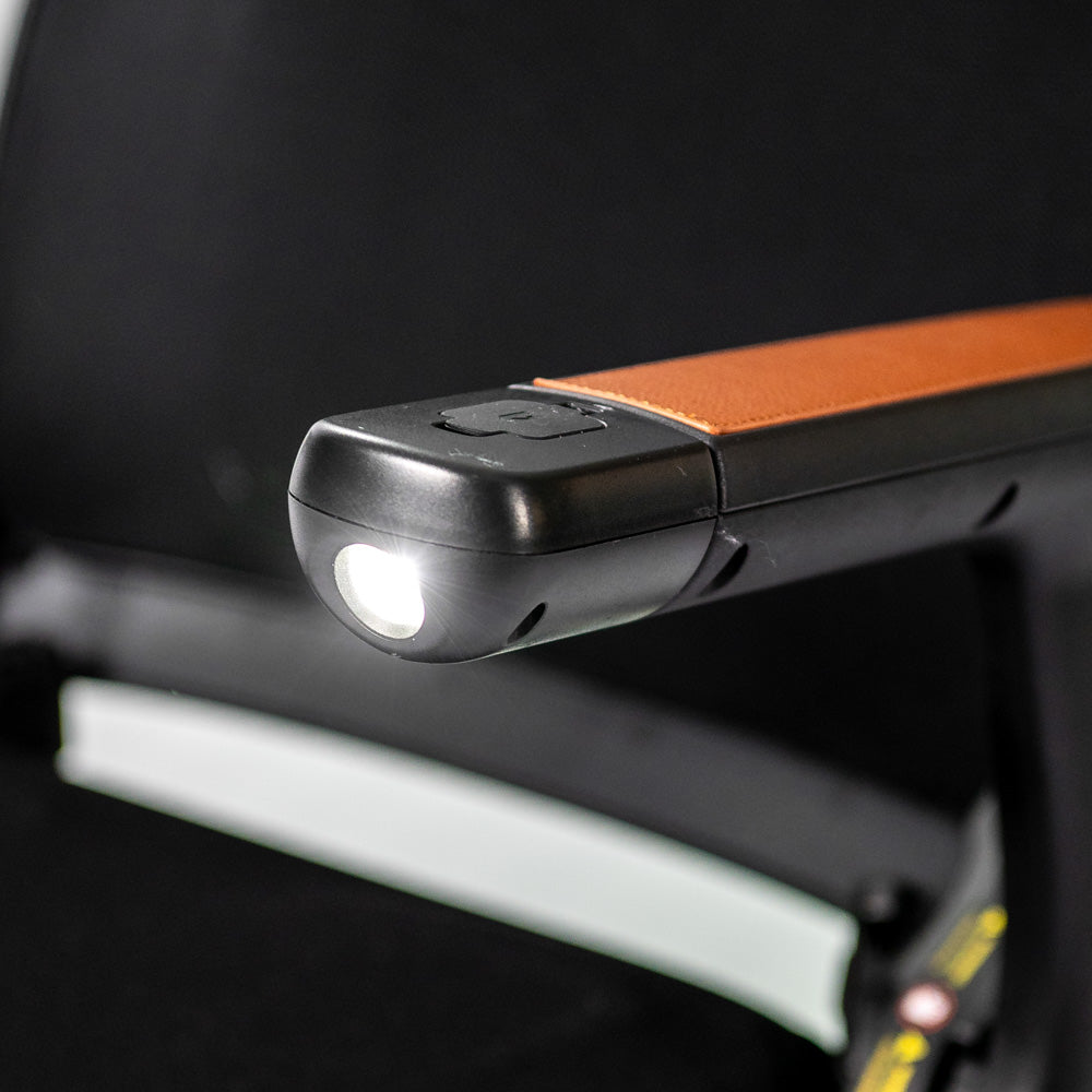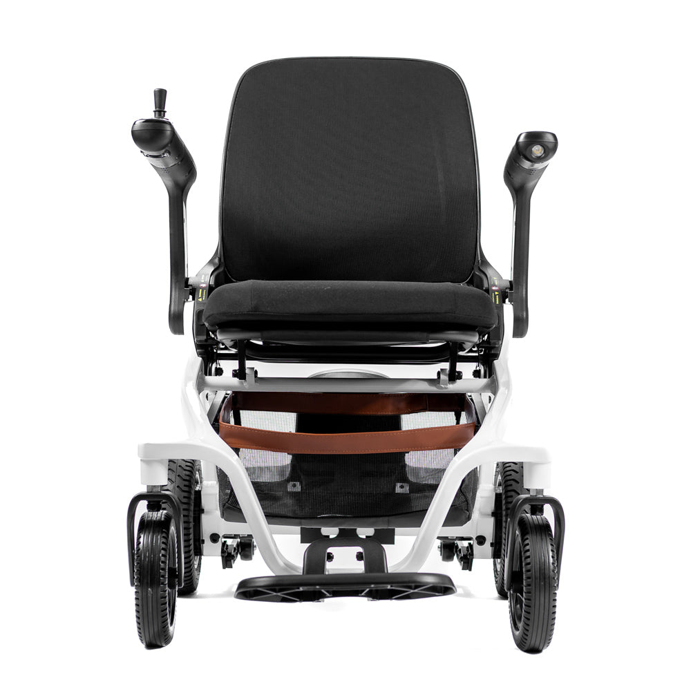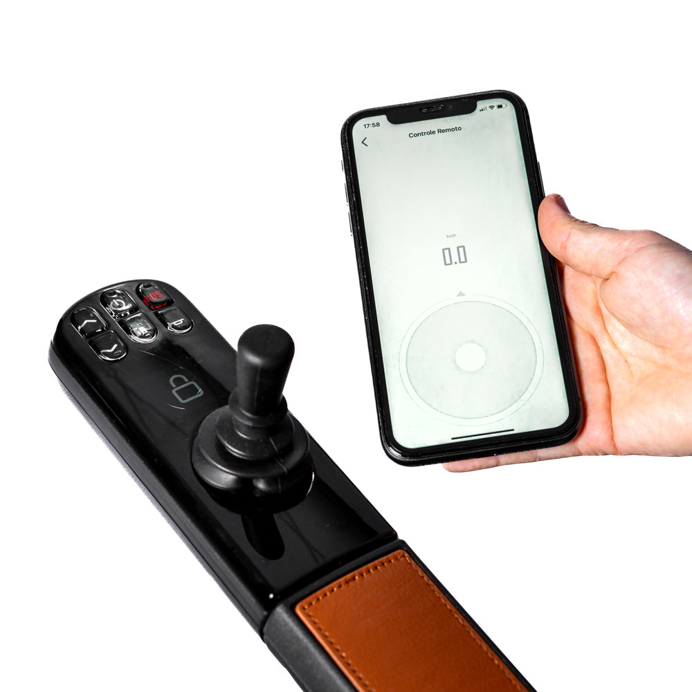 A Robooter Power Lite é uma cadeira de rodas motorizada dobrável e leve (aprox. 27 kg com bateria), com dois motores de 250 W, rodas traseiras 10" e dianteiras 8". Traz joystick LCD, opção de controle por app, mochila integrada e cesto sob assento, entregando praticidade e autonomia em ambientes internos e externos.