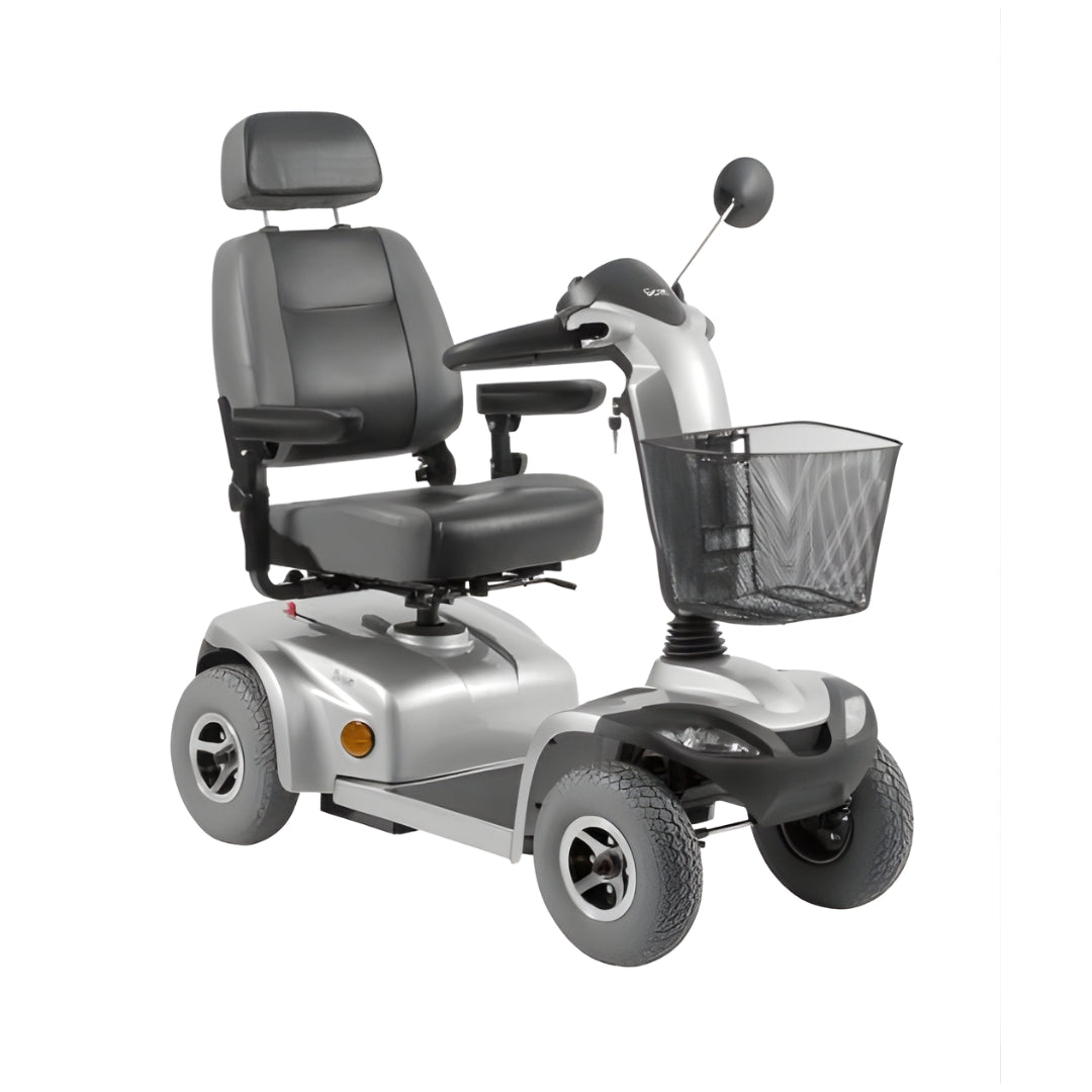 A Scott X é uma scooter motorizada da Ottobock para uso interno e externo, com motor de 700 W, baterias seladas de gel, assento premium giratório e reclinável, e sistema de suspensão completo para uma condução suave e estável.