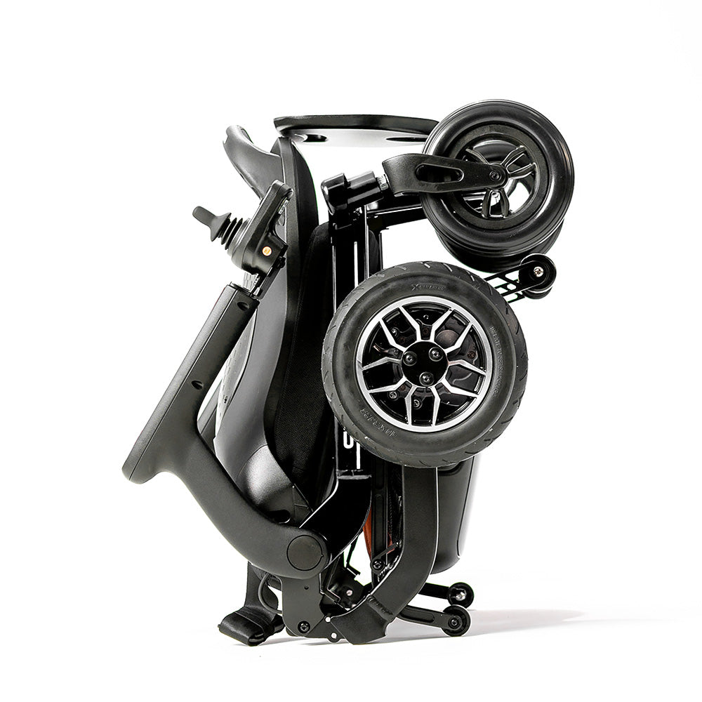 Estrutura leve em alumínio, design dobrável, bateria de lítio e condução suave por joystick. Mobilidade compacta para o dia a dia, com autonomia e conforto em ambientes internos e externos.