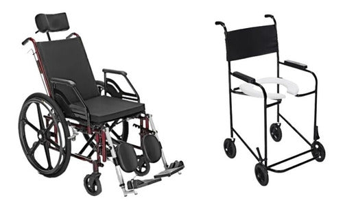 Cadeira de Rodas Reclinável Tetra Prolife 44cm Vinho + Cadeira de Banho Higiênica Simples PL 201 Prolife