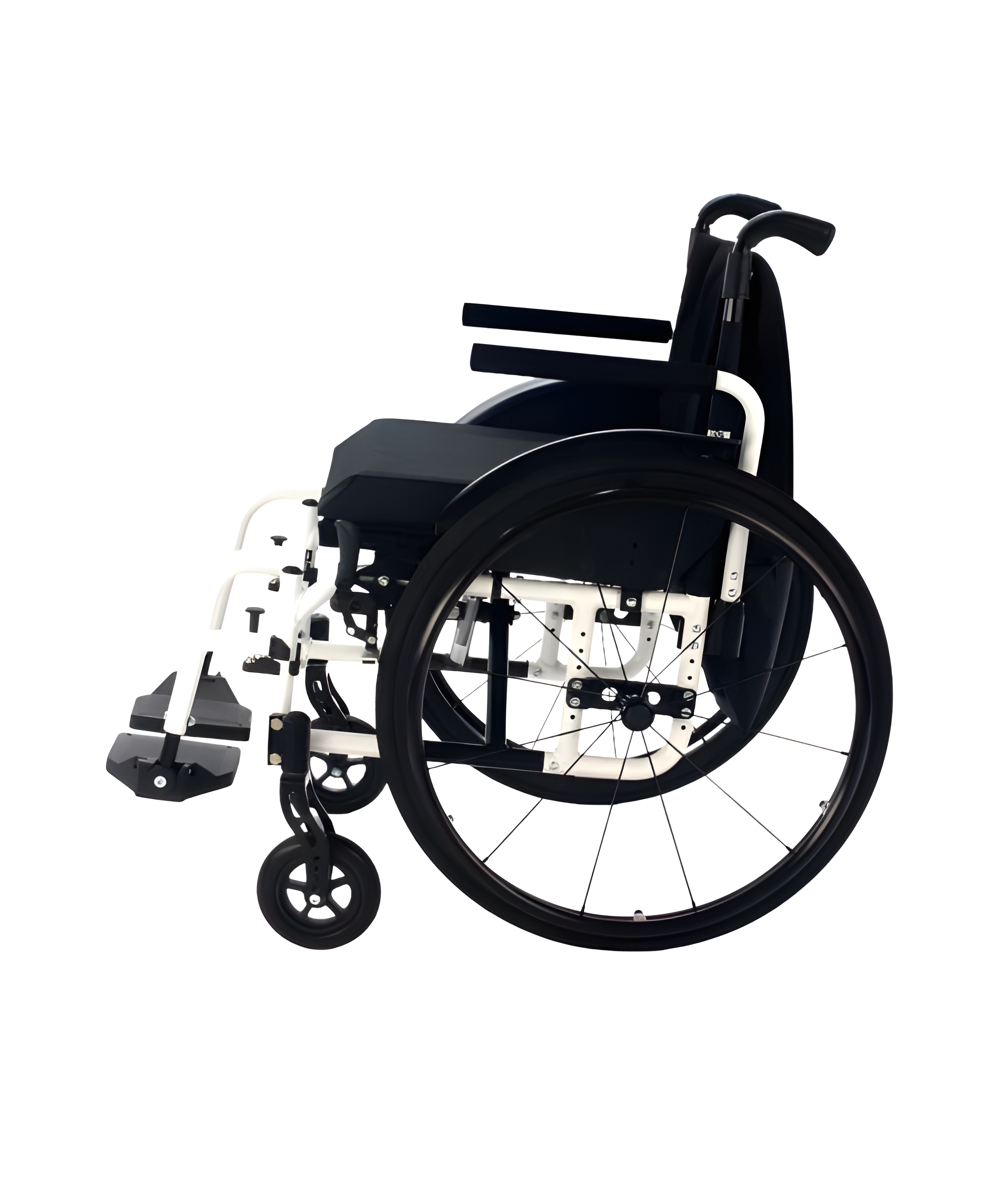Estrutura em alumínio com fechamento em X, encosto ajustável 36–46 cm com tensores, rodas traseiras 24" com engate rápido e pneus CST. Leve, robusta e prática para o dia a dia.