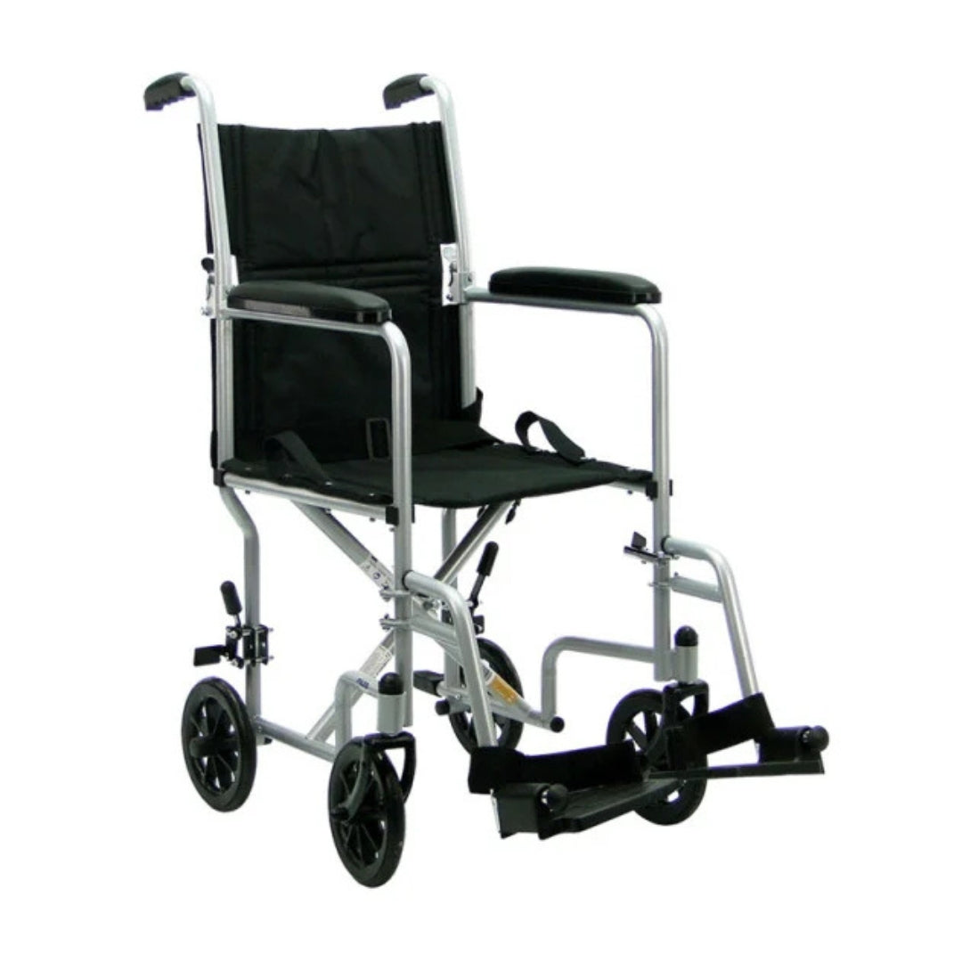 A Veneza 48cm é uma cadeira de transporte da Série Europa, com estrutura em aço, assento e encosto em nylon, apoios de pés rebatíveis e removíveis com ajuste de altura e rodas dianteiras e traseiras de 8” maciças (PVC), garantindo praticidade e segurança no dia a dia.
