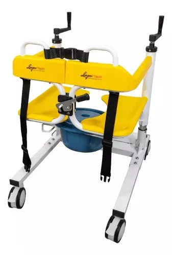 - Sistema de Elevação por Manivela Dupla: Permite ajustar a altura do assento de 45 cm a 65 cm, adaptando-se às necessidades do paciente e facilitando o manuseio para os cuidadores.