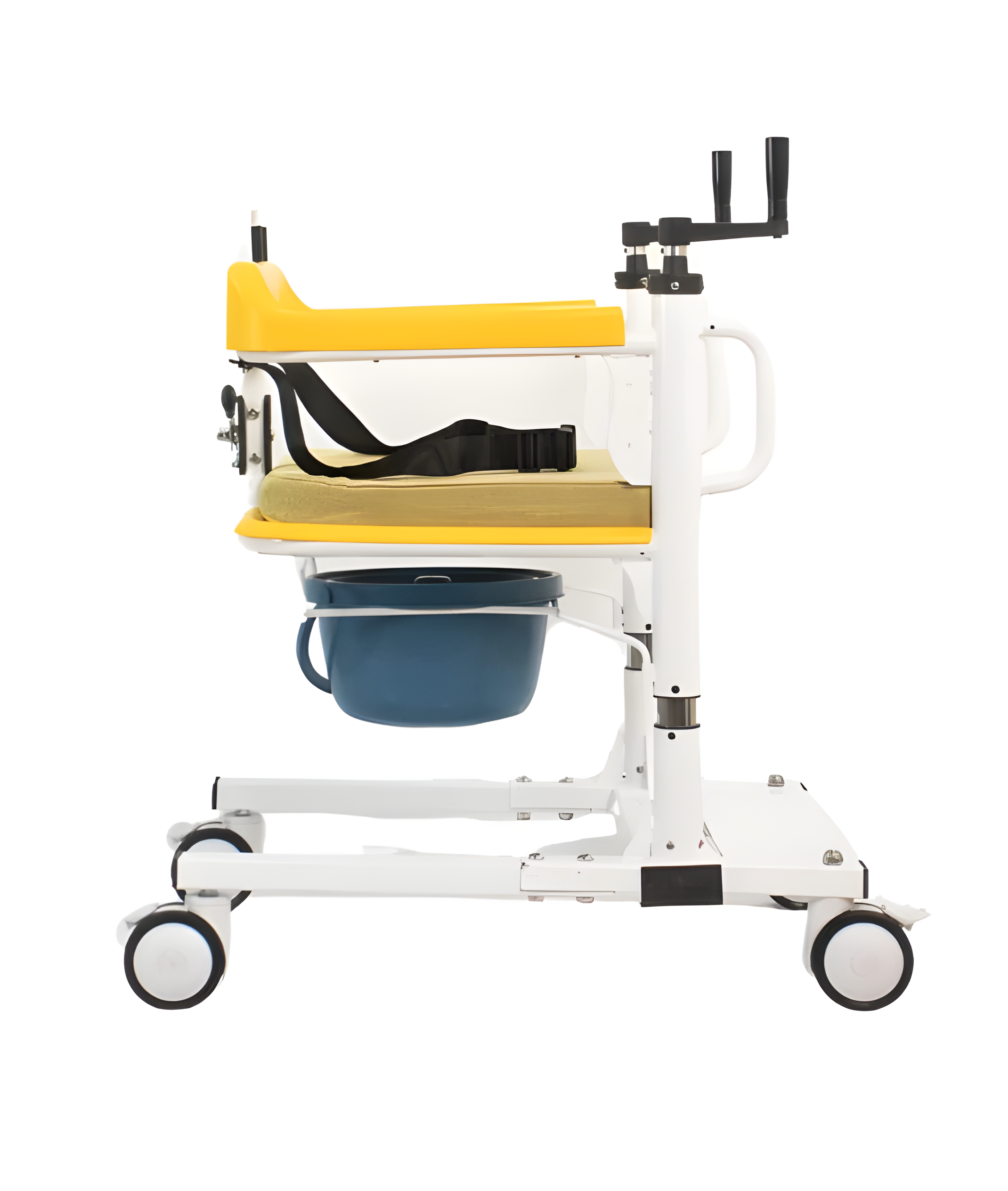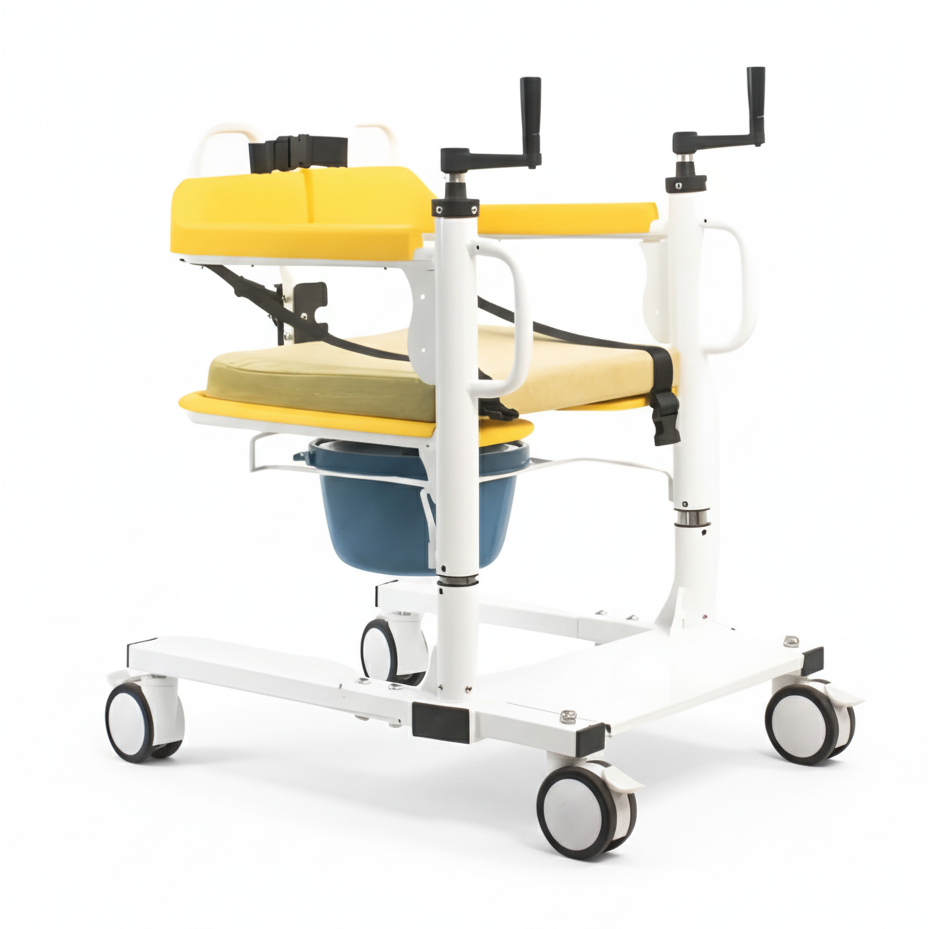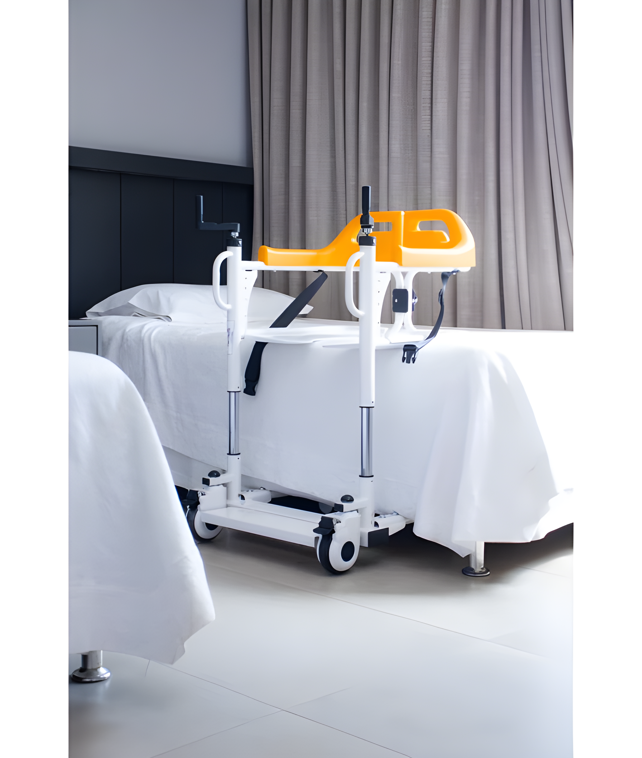 Uma solução 4 em 1 (transferência, transporte, banho e uso sobre vaso) que facilita a rotina do cuidador e do usuário. Estrutura robusta, componentes duráveis e regulagens práticas garantem segurança e conforto durante as movimentações.