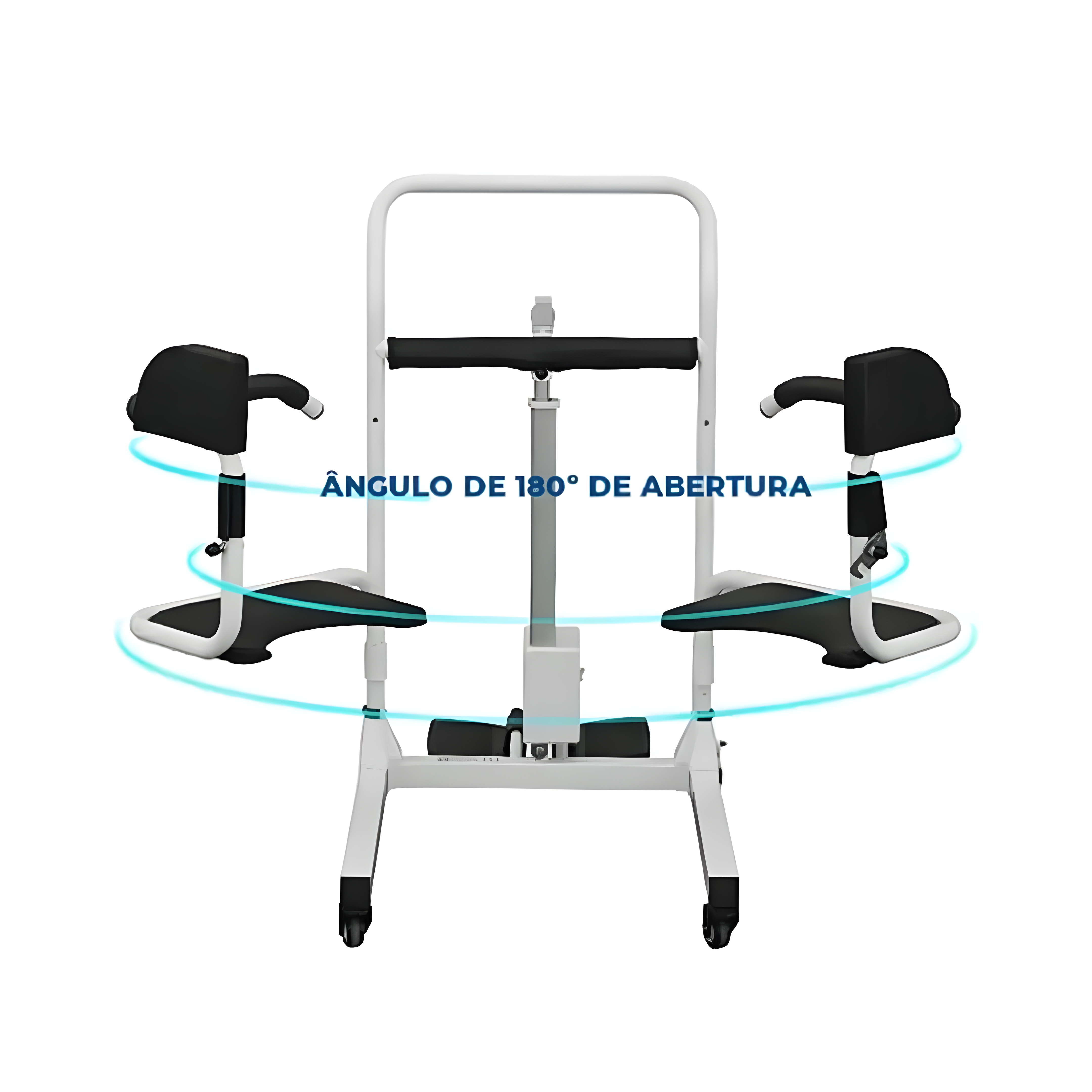Equipamento versátil que apoia o cuidador e traz segurança ao usuário para realizar higiene íntima e transferências curtas (cama?cadeira/vaso) com praticidade.