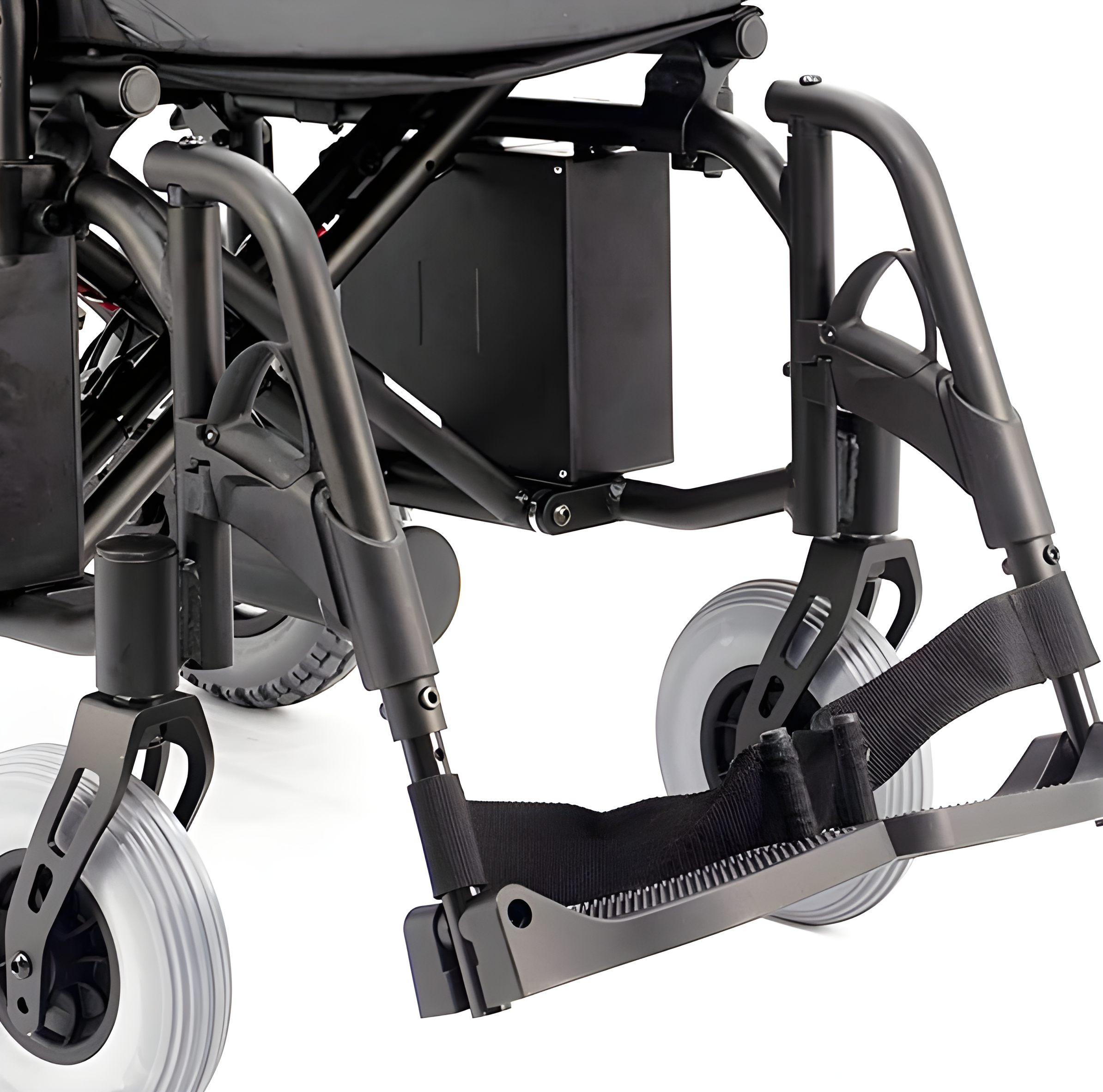 Estrutura em alumínio com fechamento em “X”, dupla motorização traseira, baterias seladas VRLA e freios eletromagnéticos. Mobilidade com conforto, autonomia e segurança para o uso diário em ambientes internos e externos.
