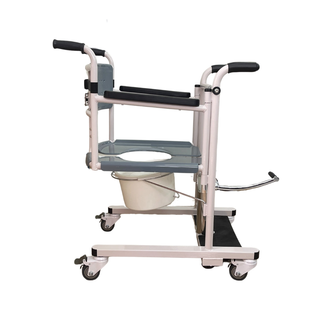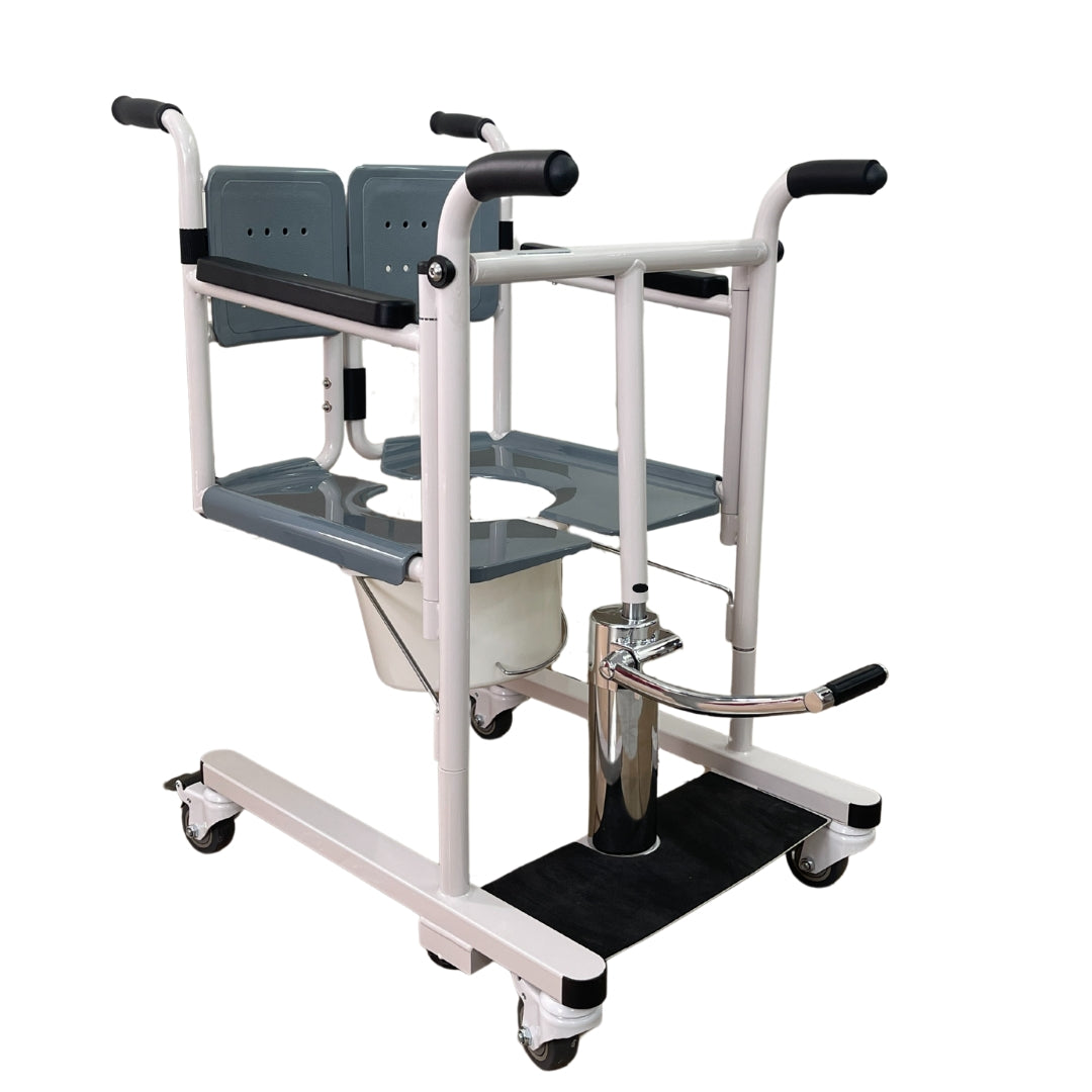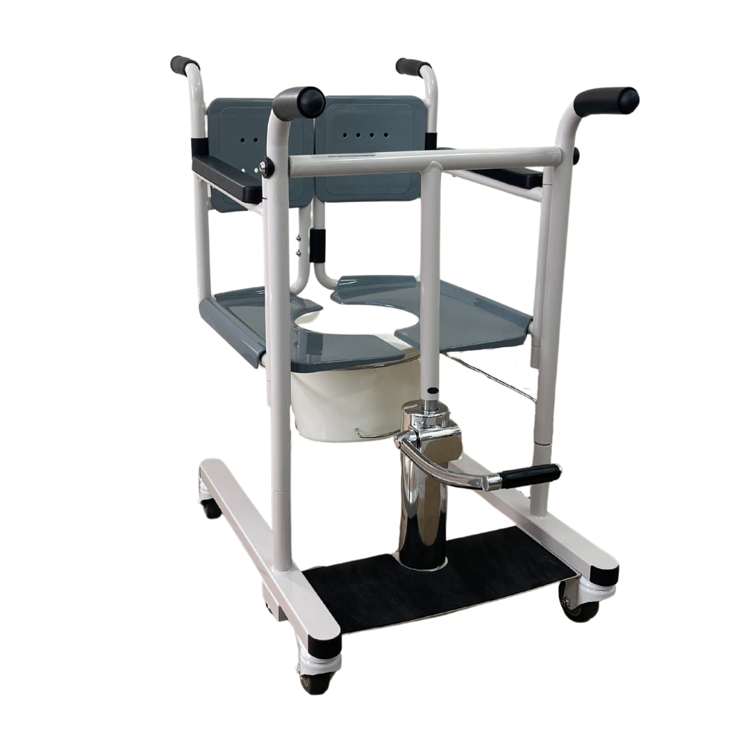A Cadeira de Transferência MBA005LIFT da Mobil Saúde proporciona mobilidade e conforto para pessoas com dificuldades de locomoção, com elevação hidráulica, comadre integrada e montagem intuitiva para transferências seguras.