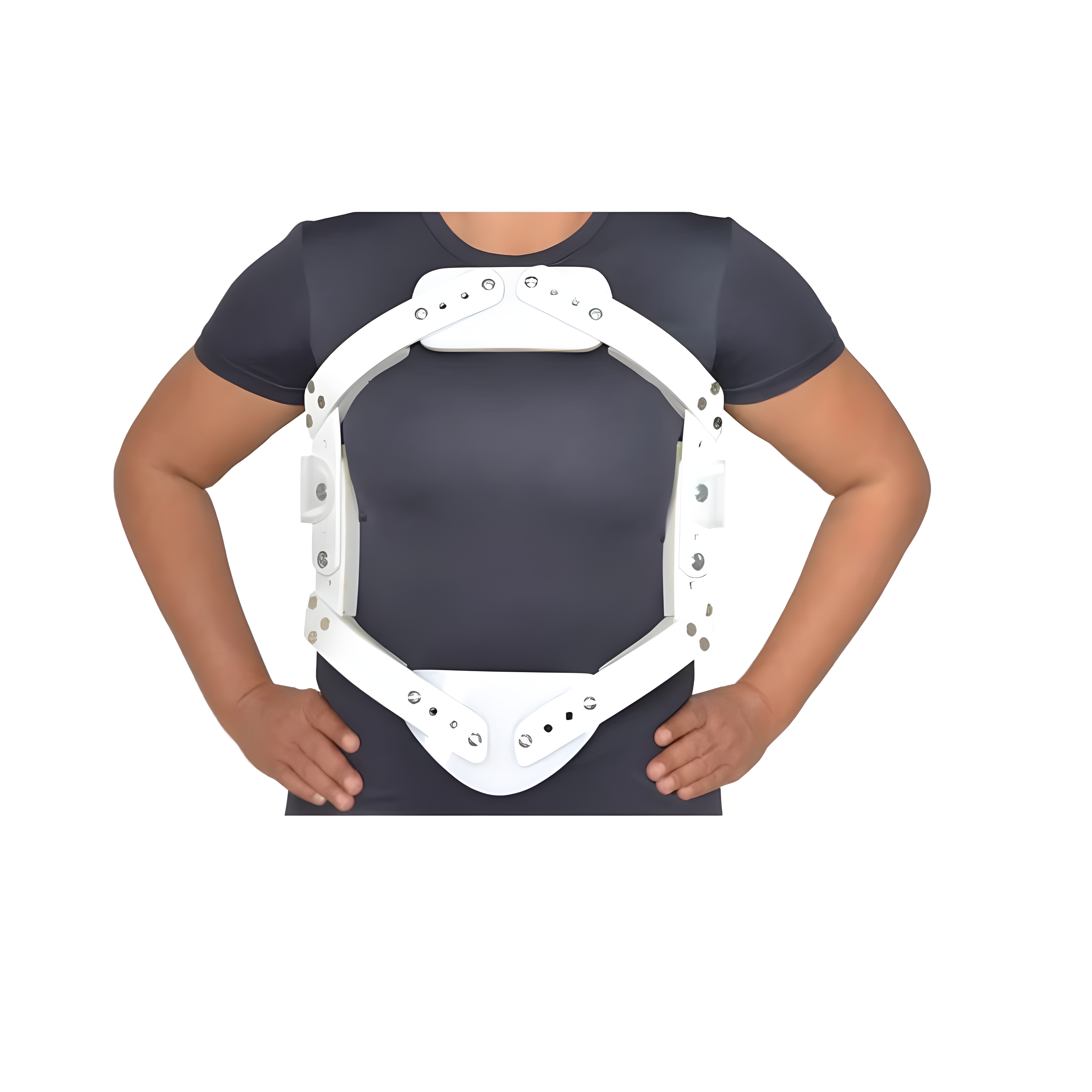 Colete toracolombar tipo Jewett para hiperextensão, indicado para postura cifótica e para recuperação de fraturas por compressão na coluna torácica. Confeccionado em PVC, com fecho em velcro, almofadas revestidas com espuma e regulagens ajustáveis para melhor adaptação.
