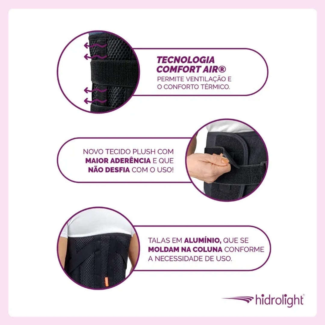 O Colete Putti Max Alto Hidrolight oferece estabilização robusta para a coluna toraco-lombo-sacra. Ideal para casos de hérnias, traumatismos, fraturas osteoporóticas e pós-operatórios, proporciona suporte e alívio.