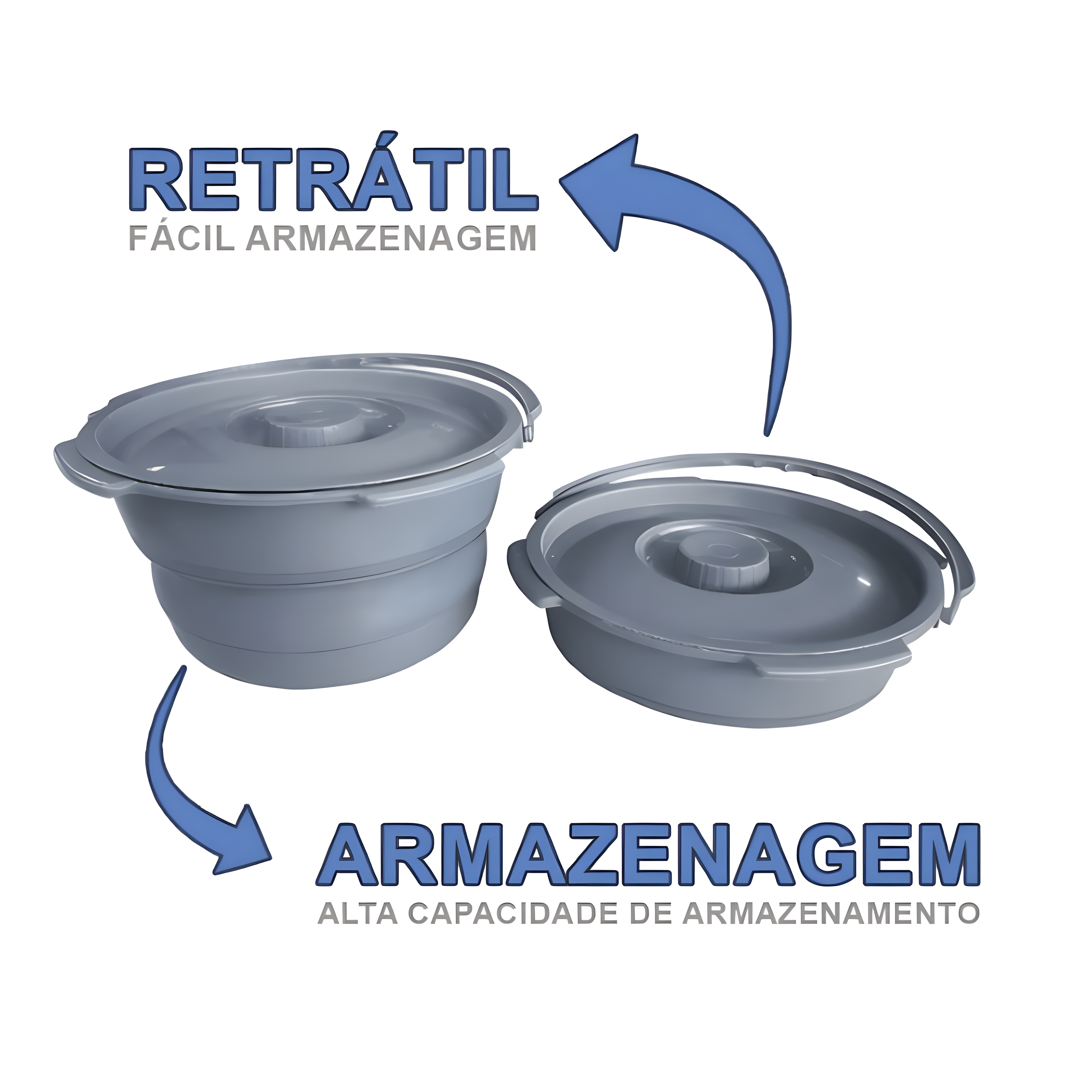 Vem com tampa removível e alças rebatíveis para transporte seguro e higienização prática.