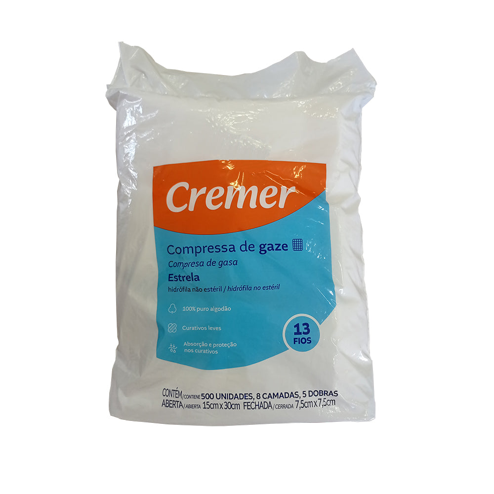 Compressa de Gaze 7.5x7.5 13 Fios Estrela com 500 Unidades Cremer