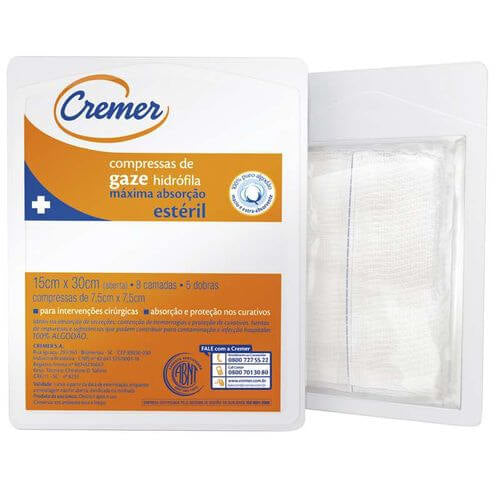 A compressa de gaze é um produto médico-hospitalar, caracteriza-se como tecido hidrófilo estéril do tipo tela, de constituição leve, macia e altamente absorvente, apresenta composição isenta de impurezas e substâncias. Além disso, possui dobras laterais para dentro, evitando assim a desfiação, fios soltos ou fiapos.