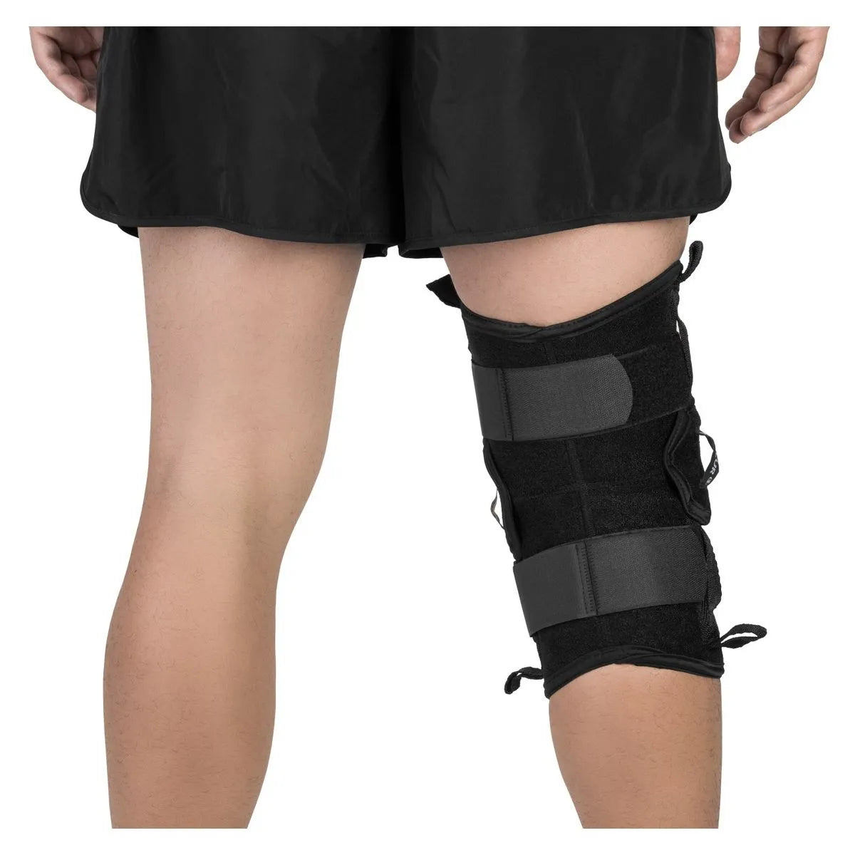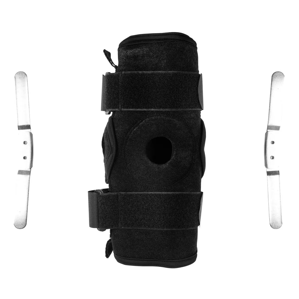 É uma órtese articulada para o joelho, com dobradiças metálicas nas laterais que auxiliam na estabilidade e limitam movimentos indesejados, mantendo mobilidade funcional. O neoprene mantém o aquecimento local, favorecendo o conforto durante o uso.