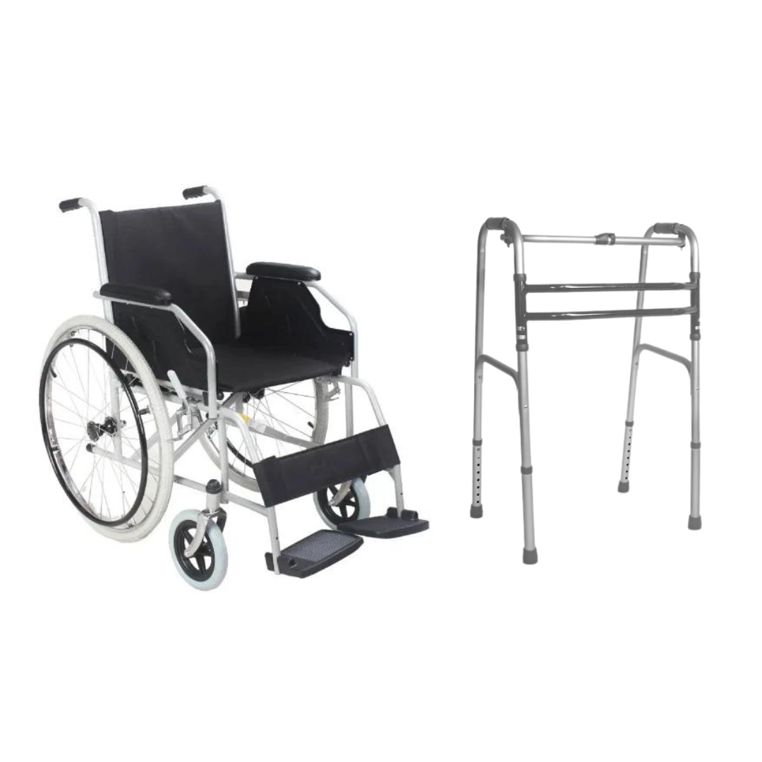 Cadeira de Rodas D100 Dellamed + Andador Articulado 3 Barras Dobrável Hidrolight