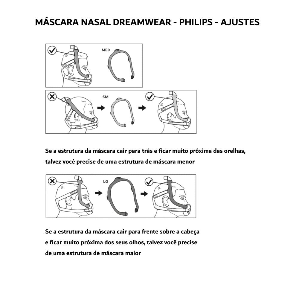 Especificações da Máscara Nasal para CPAP DreamWear Ajustável – Philips Respironics.