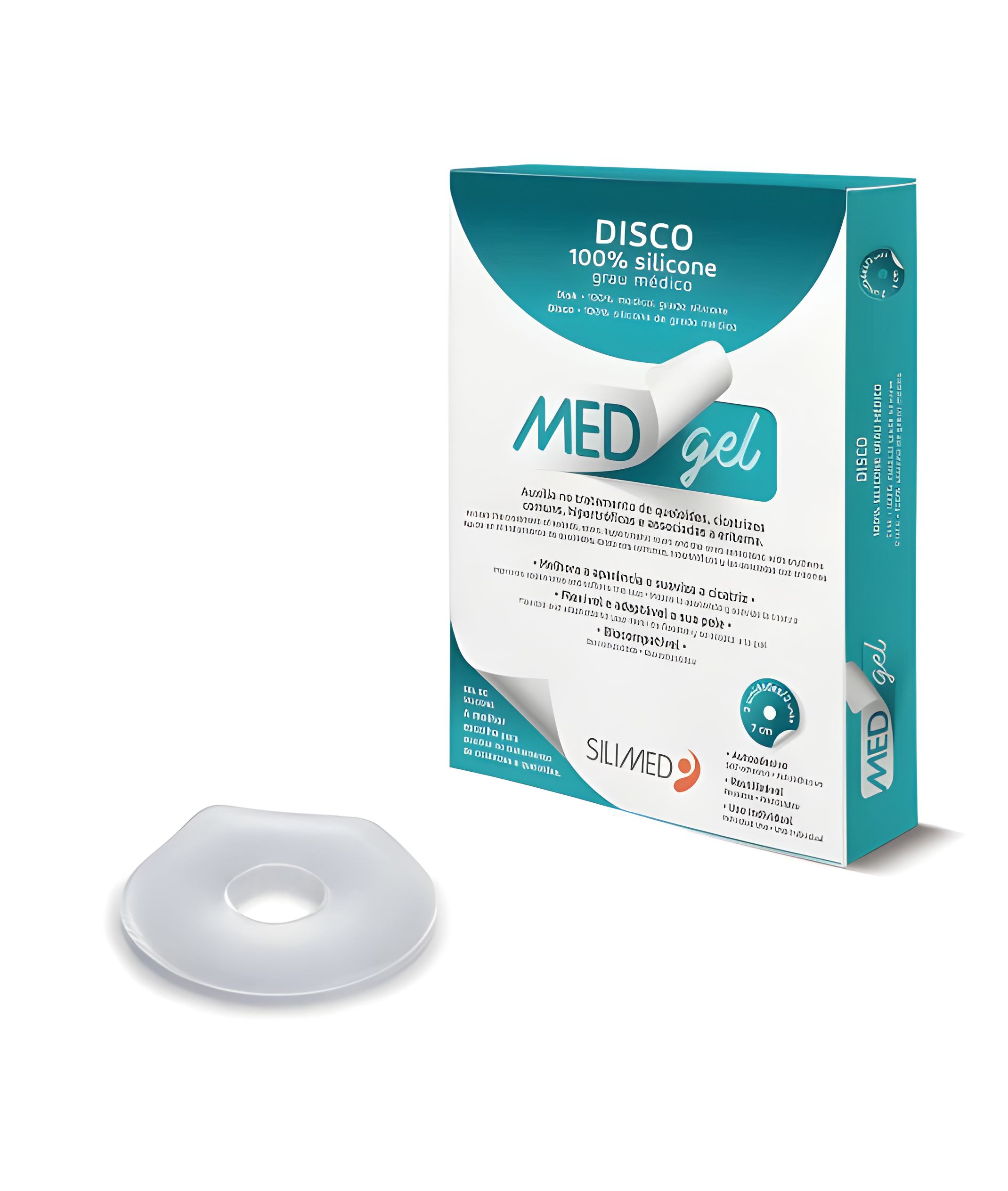 O Medgel Disco é um dispositivo de silicone pronto para uso, desenvolvido para cuidar de cicatrizes areolares em procedimentos de redução e aumento mamário, auxiliando também no manejo de queloides e cicatrizes hipertróficas. É flexível, biocompatível, reutilizável e de fácil higienização.