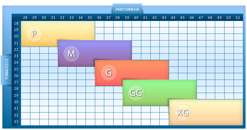 Importante: Em medidas limítrofes, prefira o tamanho maior para conforto e eficácia.