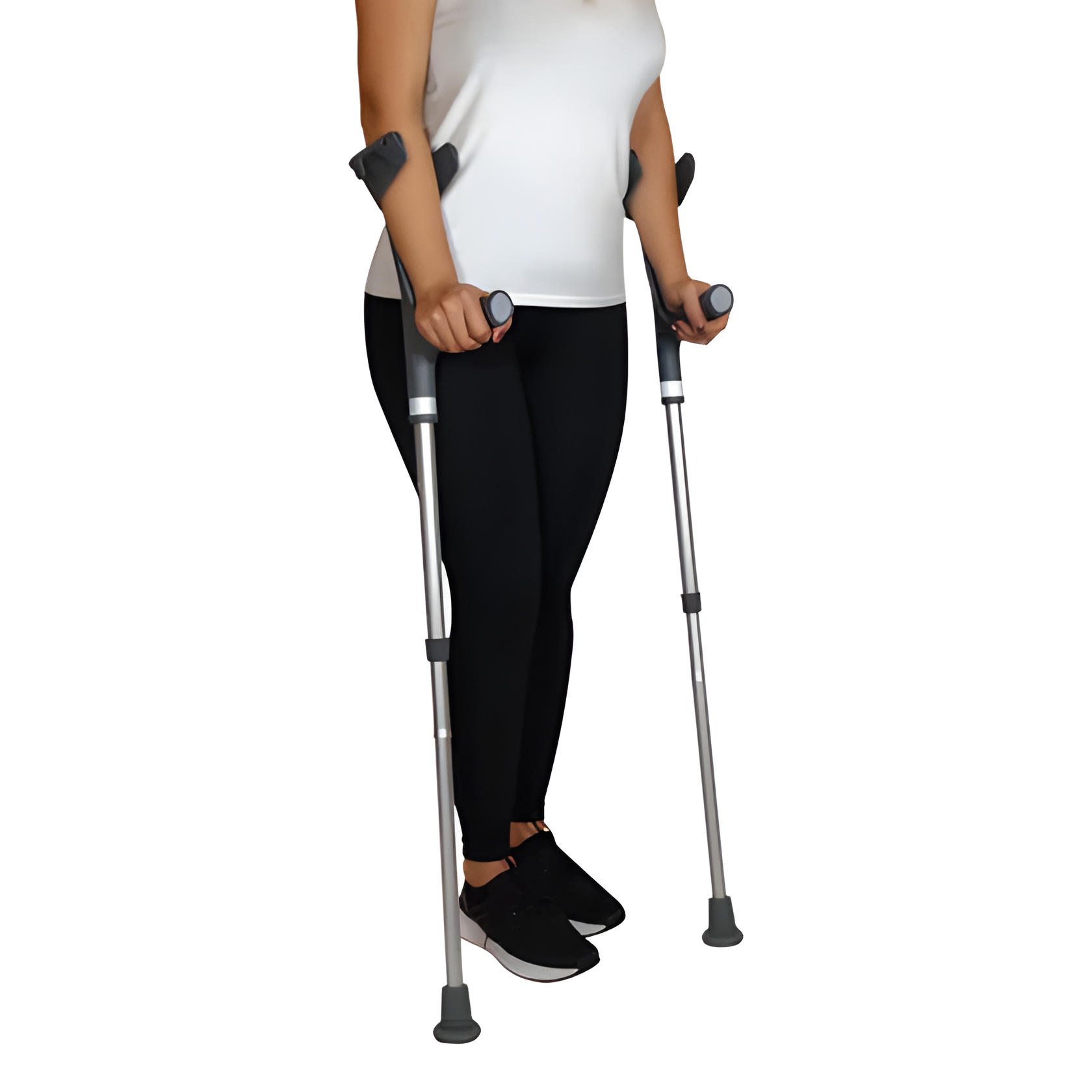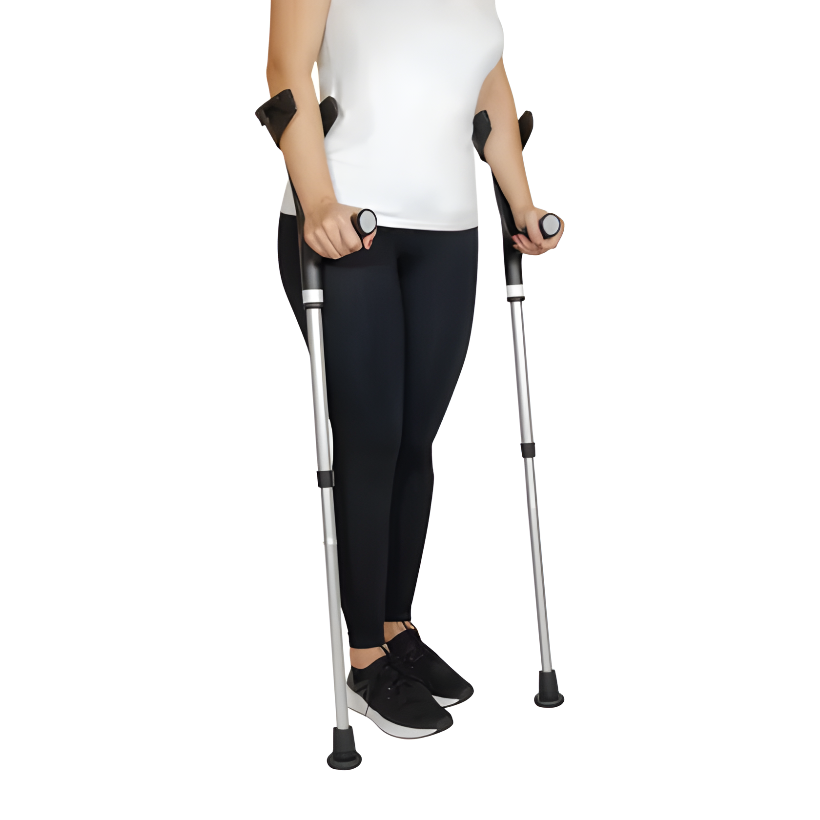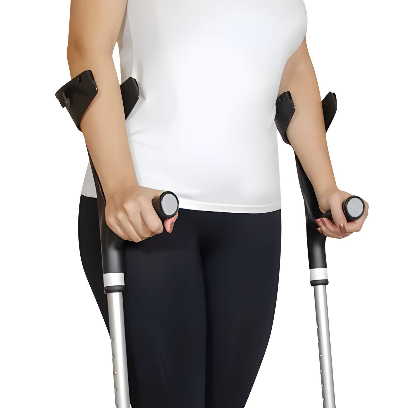 Par de muletas canadenses dobráveis, em alumínio, com 7 níveis de regulagem (usuários ~1,55 m a 1,85 m), altura 99–114 cm, e capacidade até 130 kg (quando usadas em par). Braçadeira com fita refletiva 360º e punho ergonômico para conforto e segurança no dia a dia.