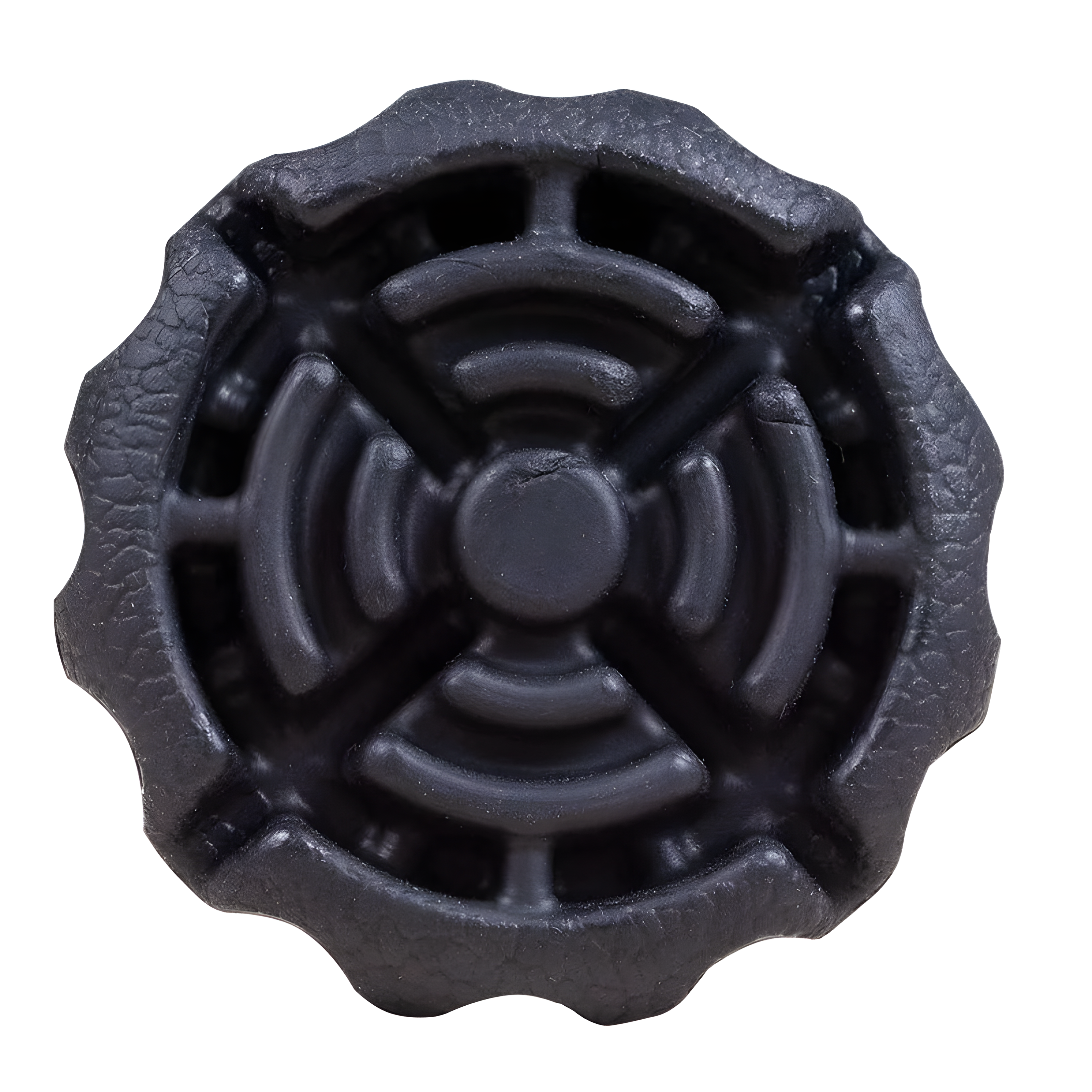É um acessório de borracha com sistema de articulação que amplia o contato com o solo, oferecendo apoio uniforme e maior segurança durante o uso de muletas axilares ou canadenses. Possui base antiderrapante com ranhuras e sinalizador de desgaste para orientar a troca no momento correto.