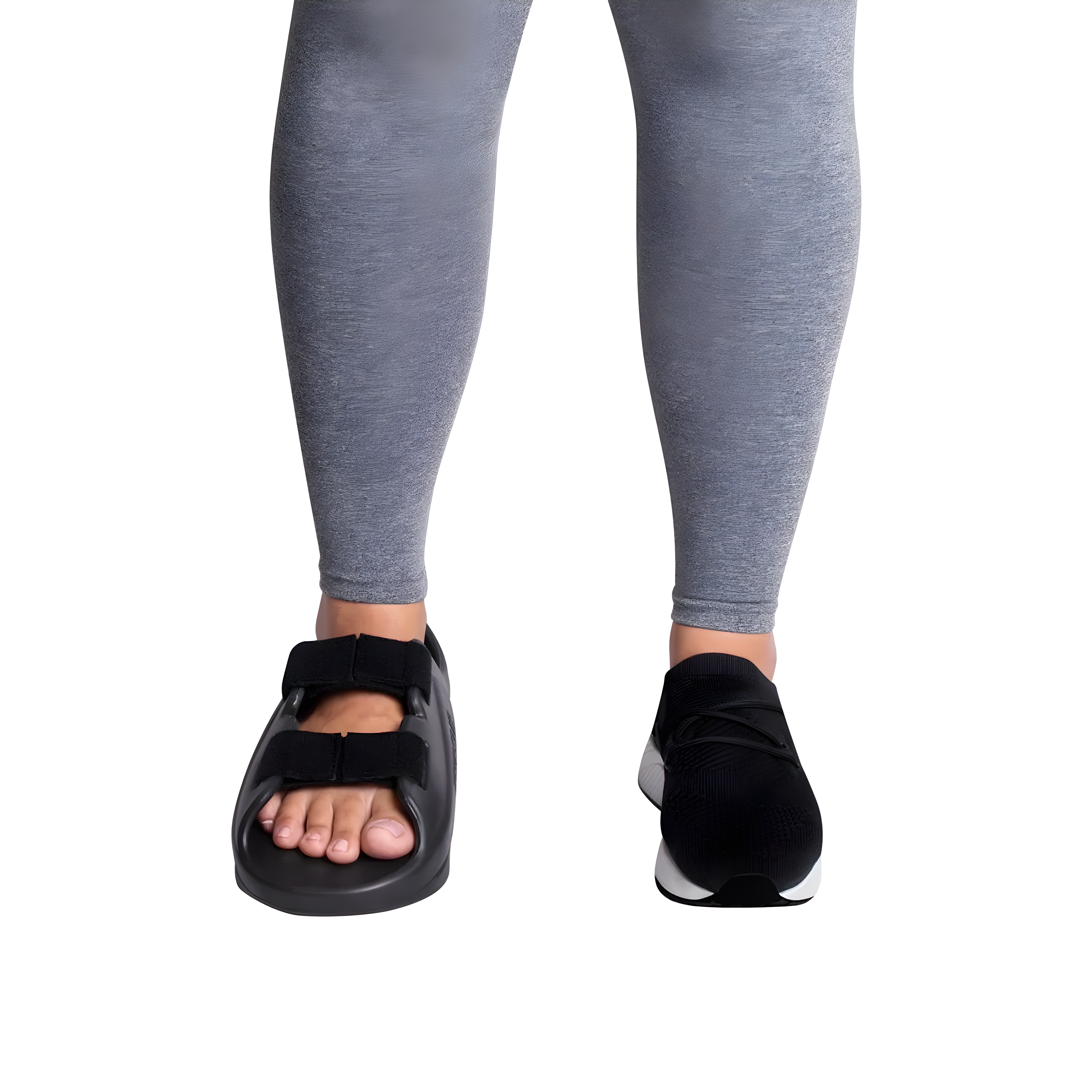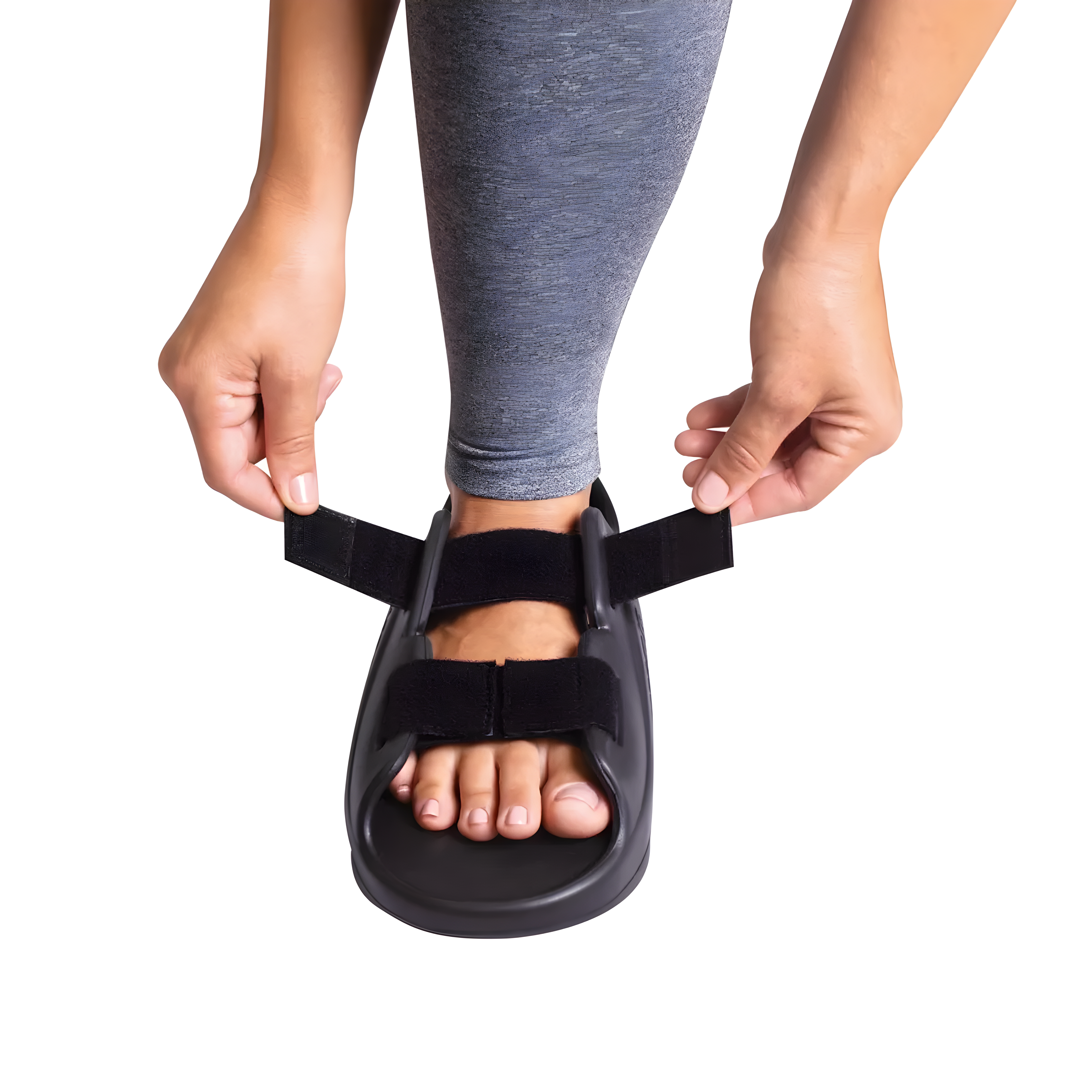 Detalhes pensados para alívio do antepé, estabilidade e praticidade no dia a dia de reabilitação.