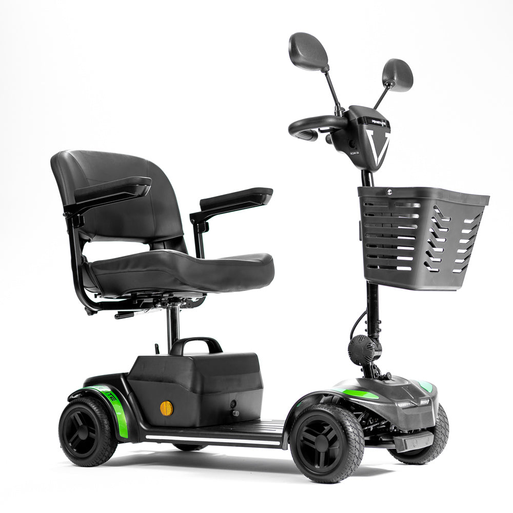 A Scooter Elétrica Speed S é uma cadeira motorizada elétrica, desmontável, com bateria VRLA 24 V / 25 Ah, autonomia de até 25 km, quatro suspensões, iluminação em LED e banco giratório 360°, desenvolvida para garantir mobilidade, conforto e praticidade em diversas situações do dia a dia.