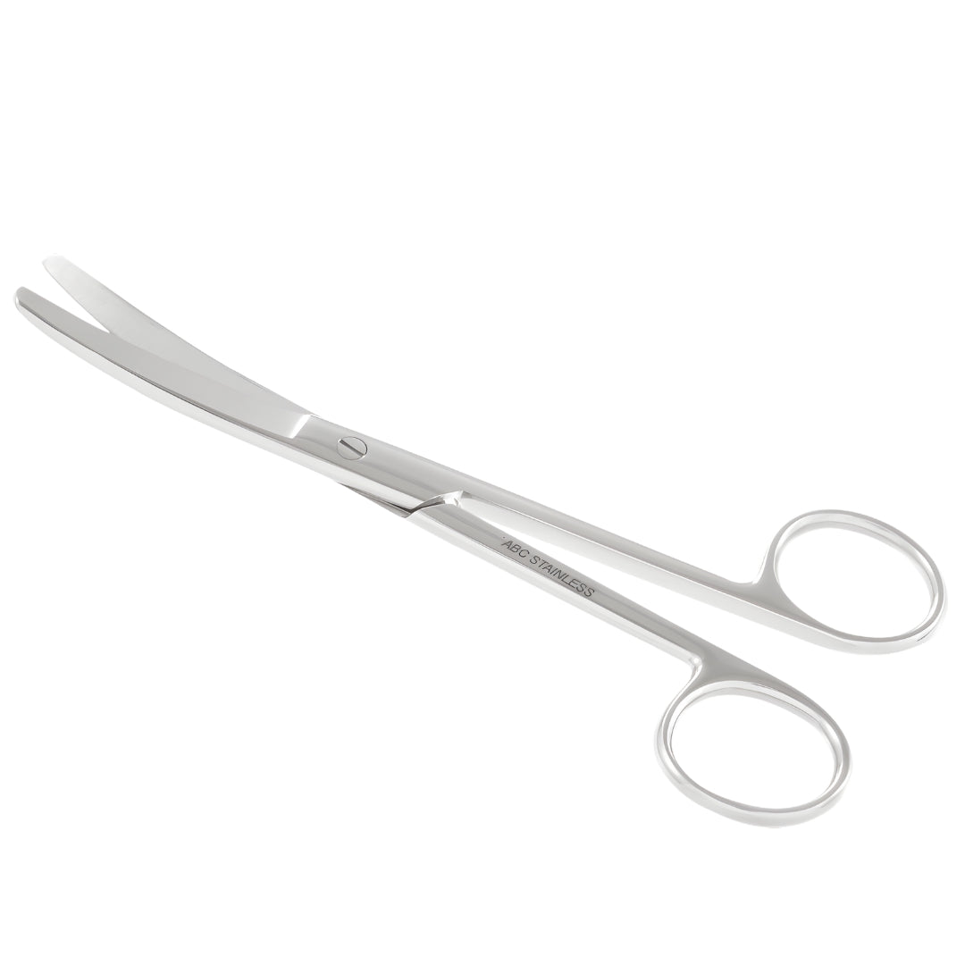Tesoura cirúrgica de 15 cm, lâminas curvas com pontas rombas (romba–romba) para corte preciso e seguro de suturas, gazes e tecidos delicados. Fabricada em aço inox cirúrgico, com acabamento satinado e autoclavável.