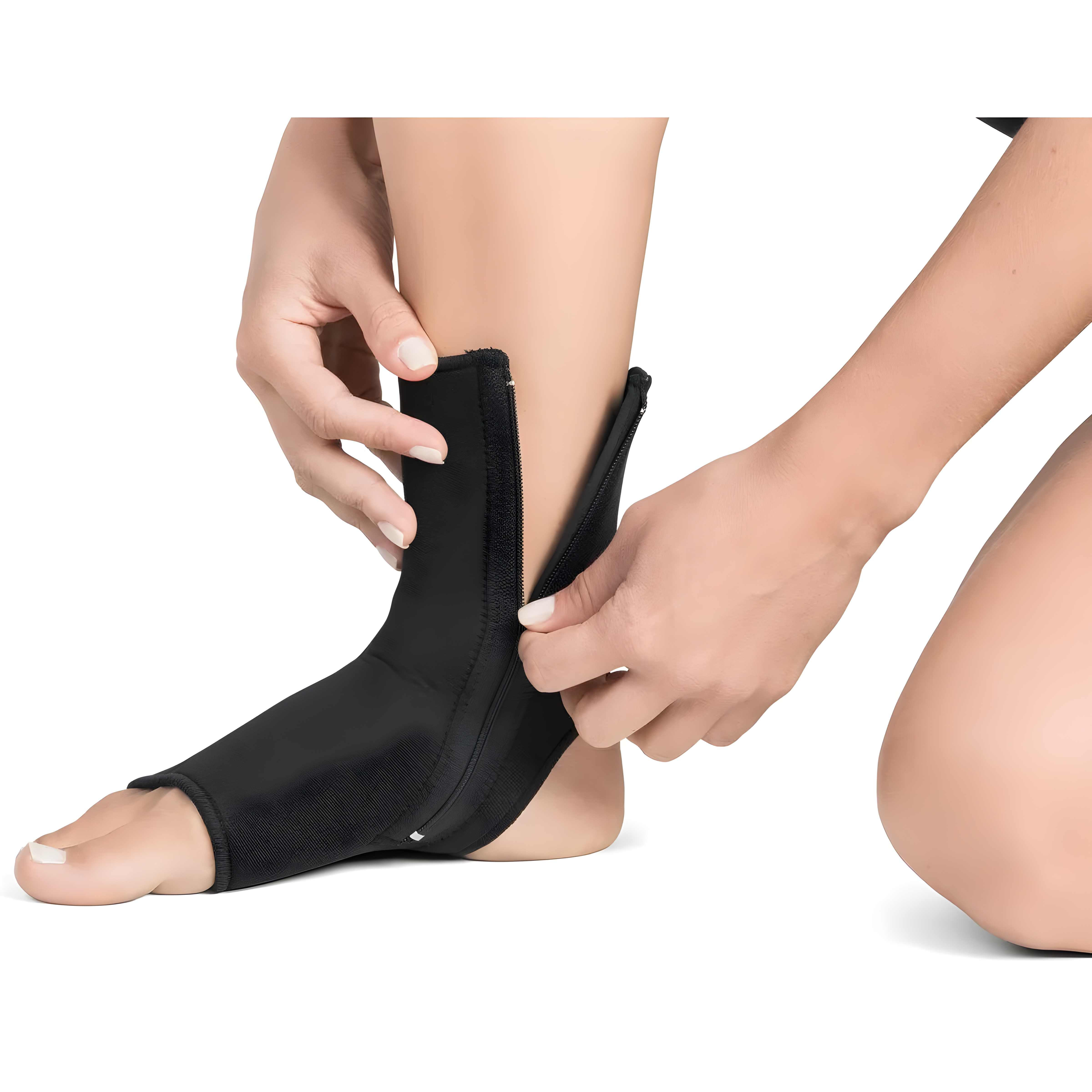 É uma tornozeleira em material termorretentor com fechamento em zíper, que proporciona compressão uniforme e apoio para o tornozelo. Indicada para auxiliar na prevenção e recuperação de entorses e instabilidades, mantendo conforto e praticidade no uso diário.